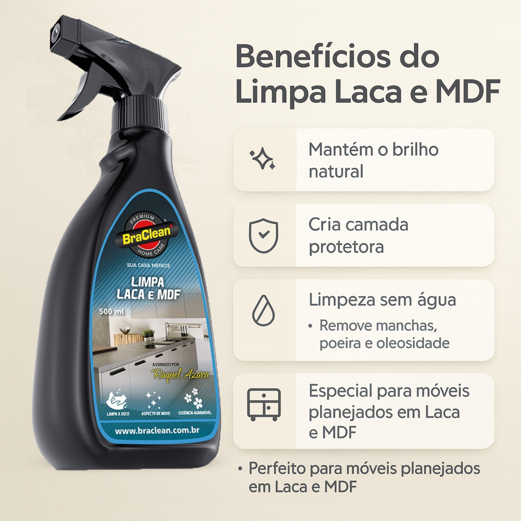Melhor Kit 3 Limpa Laca e MDF 500ml limpeza de móveis e marcenaria para uso diário BraClean