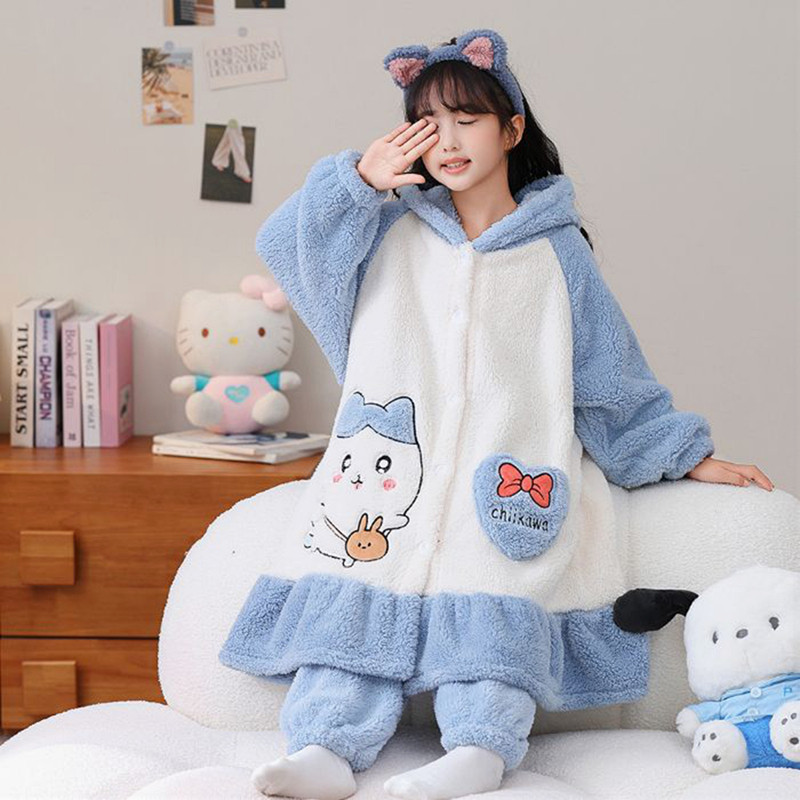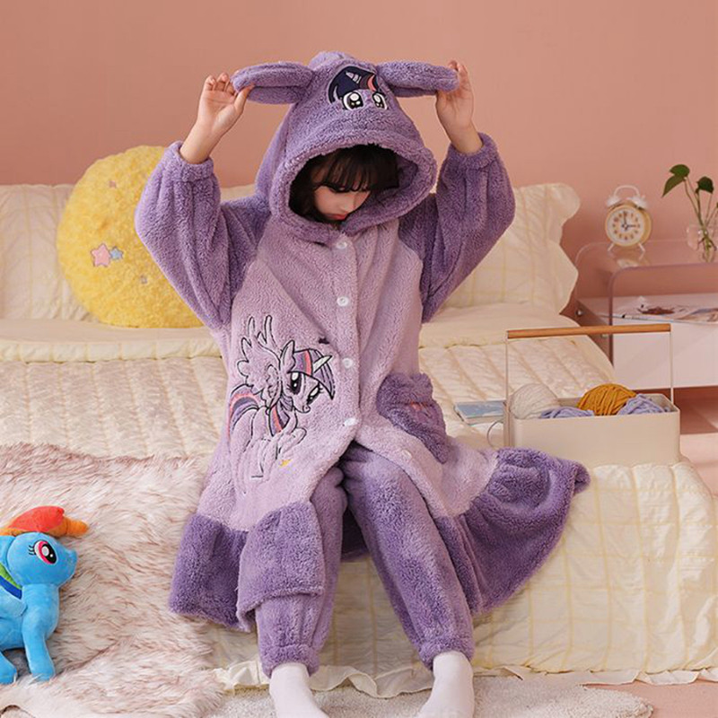 Meninas inverno forro de lã pijamas espessamento meninas crianças Coral velo dos desenhos animados médio grande crianças