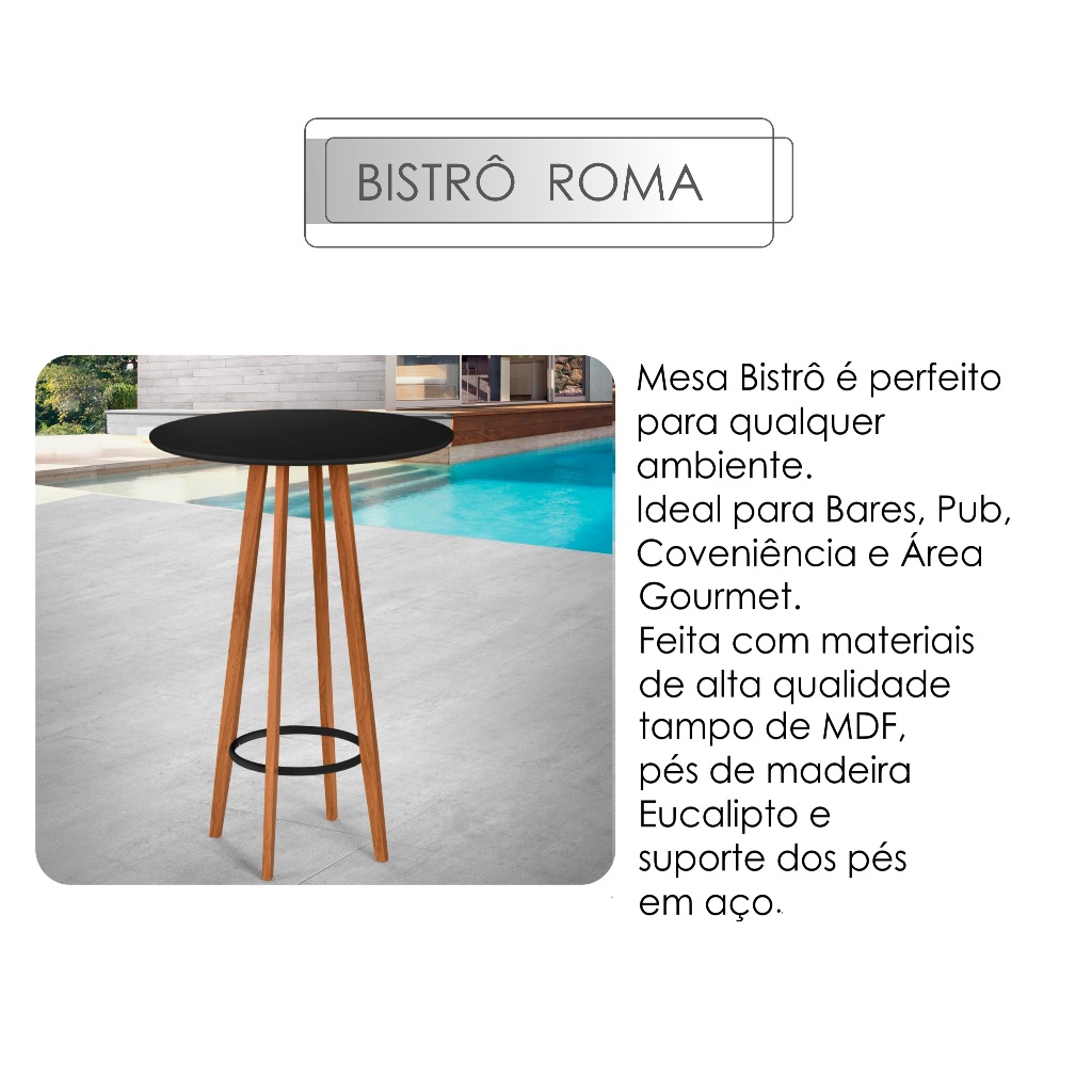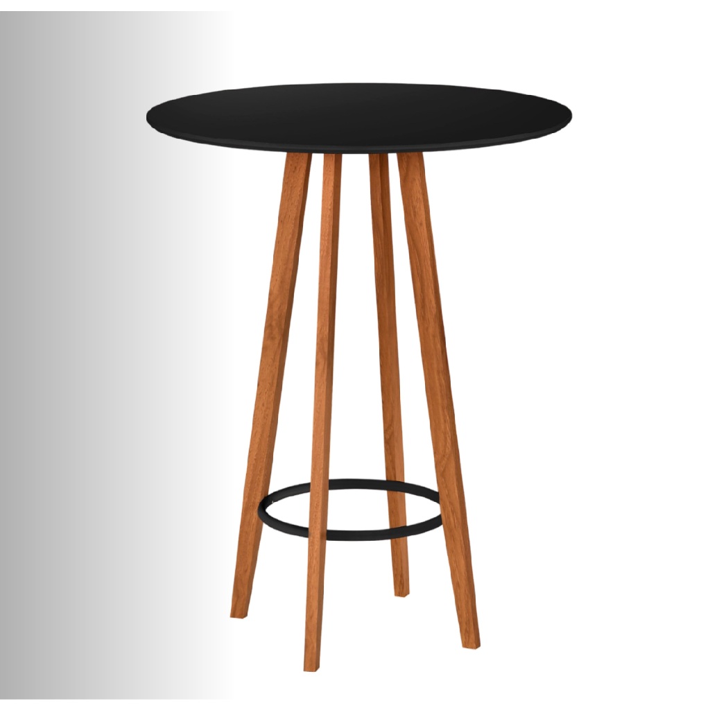 Mesa Bistrô Alta Tampo Preto com Pés de Madeira Ideal para Área Gourmet ou Varanda