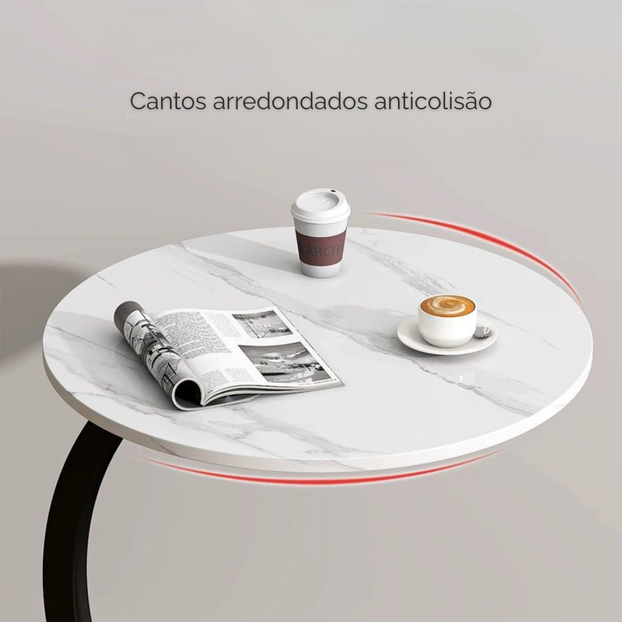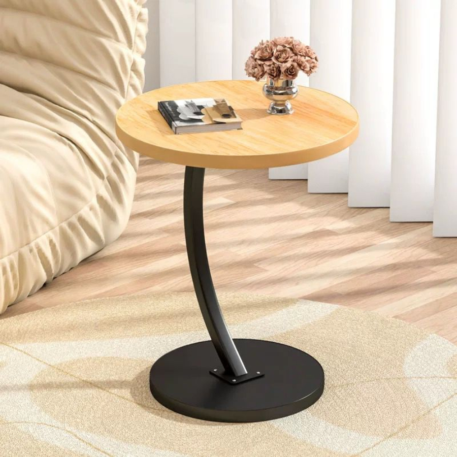 Mesa De Apoio Lateral Estilo Industrial Em MDF e Ferro Redondo Para Canto