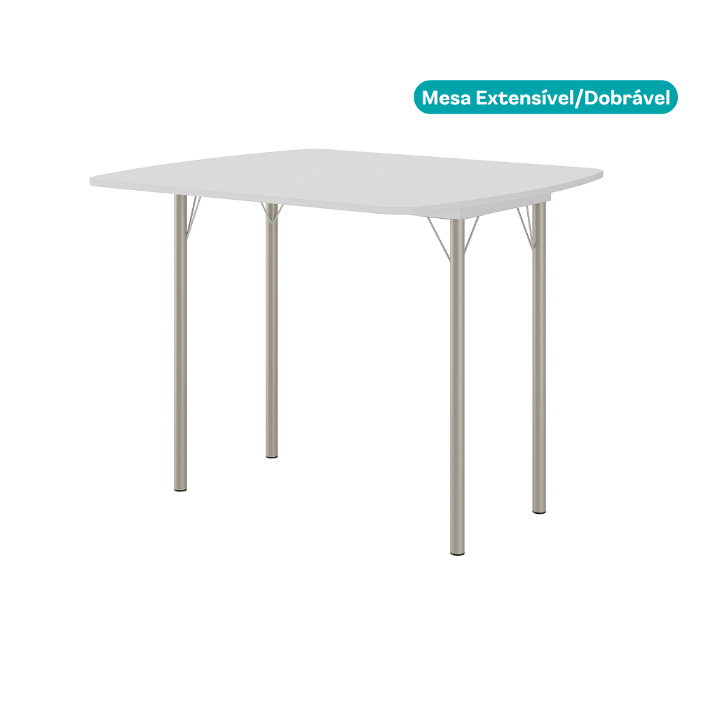 Mesa Dobrável Tampo Branco Tubos Prata 216 Carraro