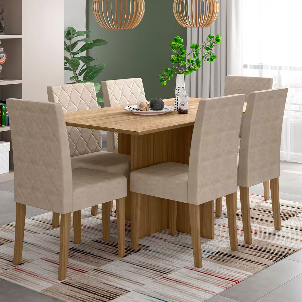Mesa Jantar Helo 06 Cadeiras Revestidas Suede 160cm Poliman