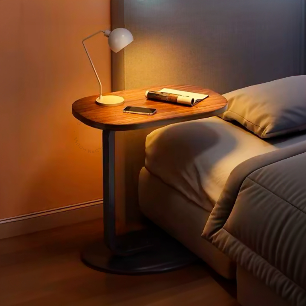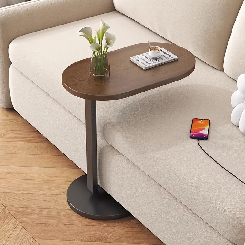 Mesa Lateral C Estilo Industrial Oval MDF e Ferro, Para Sofá ou Cama, 45x28x60cm Bege/Marrom