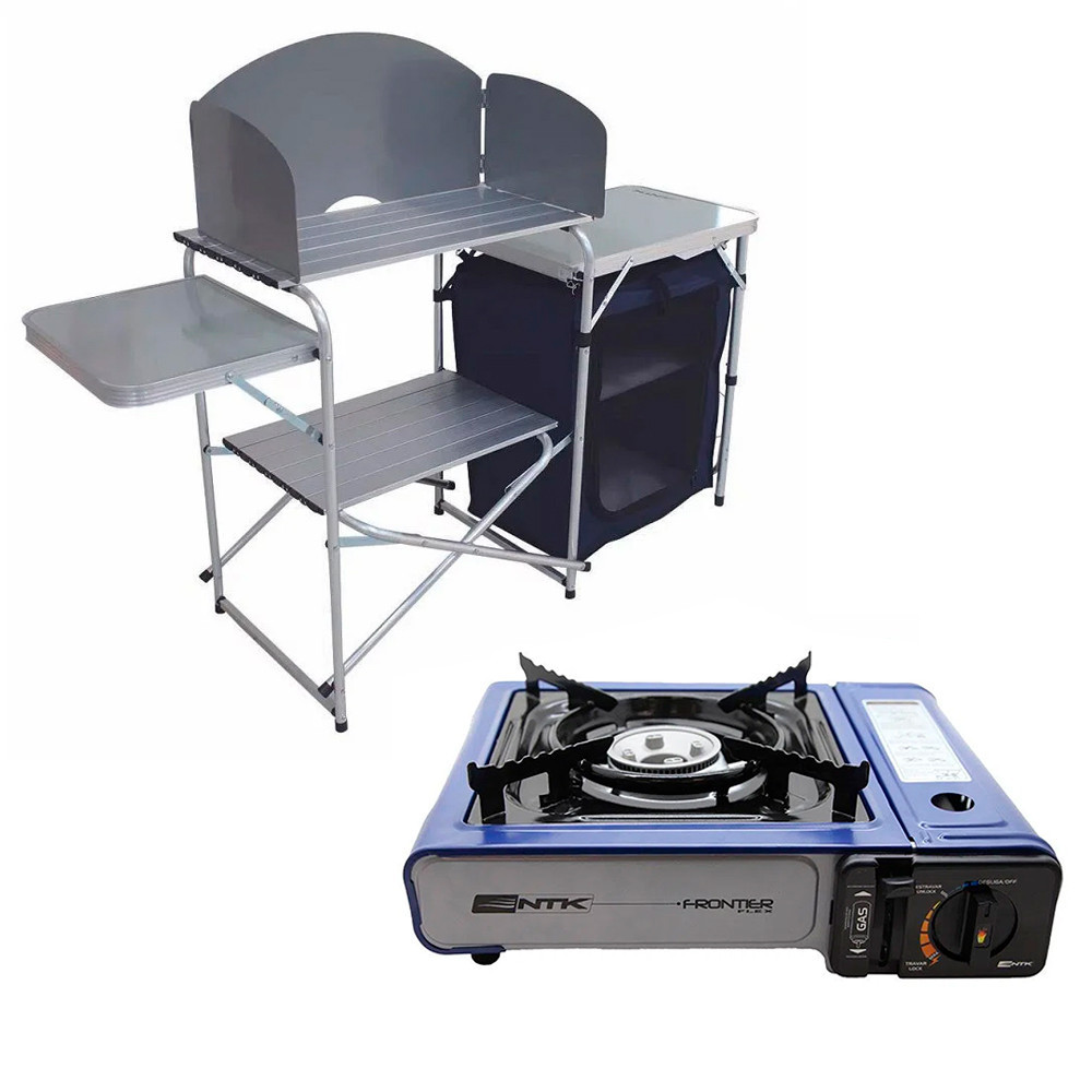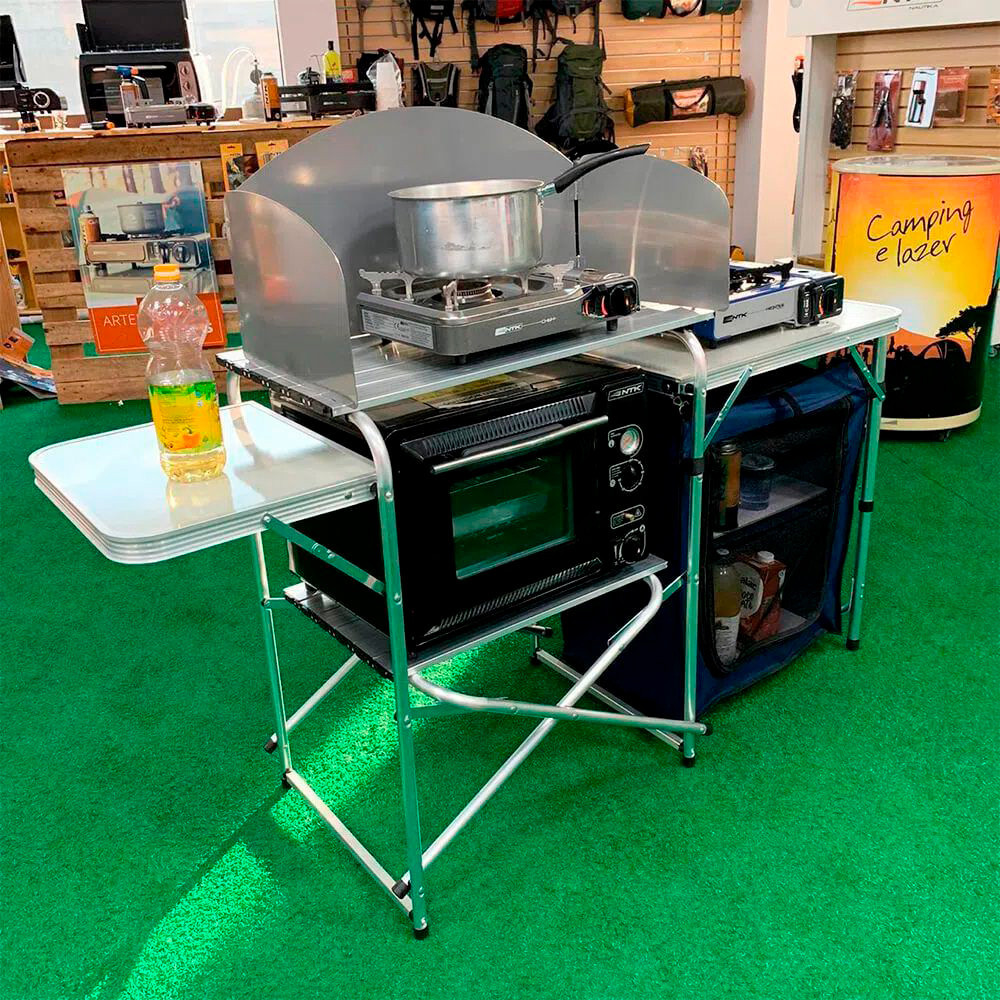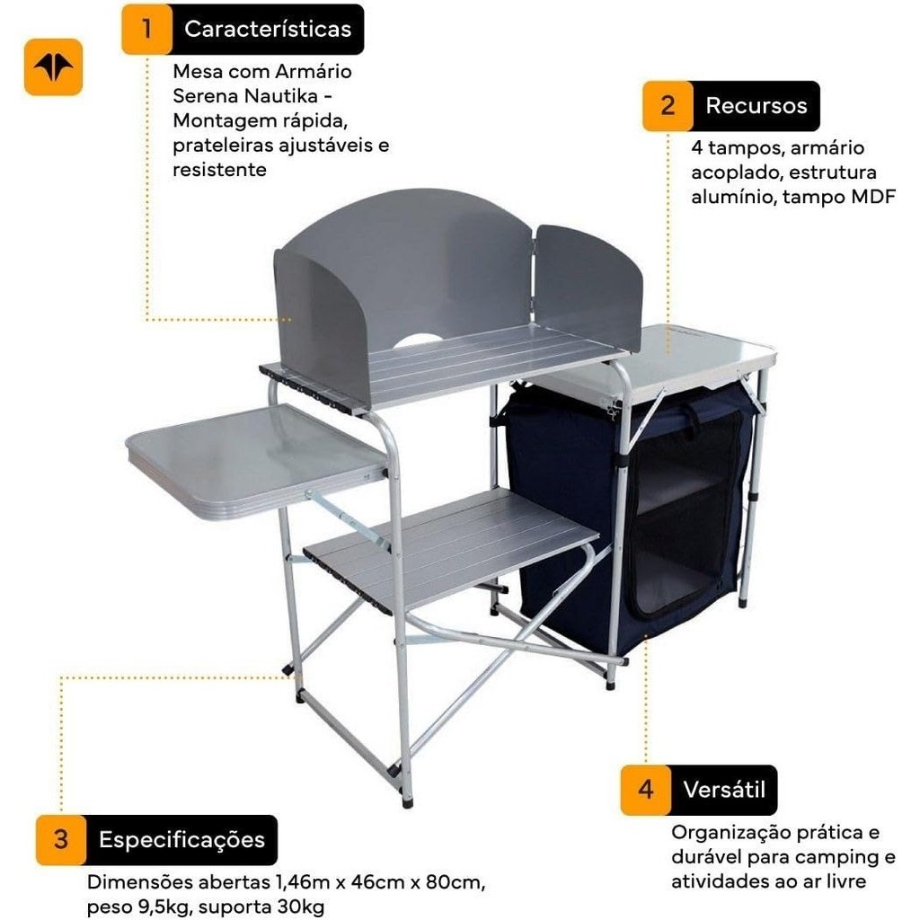 Mesa Portátil Armário Serena + Fogareiro Frontier 3 em 1 NTK para camping e pesca - Nautika NTK