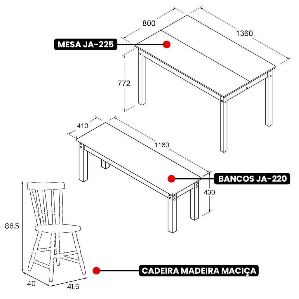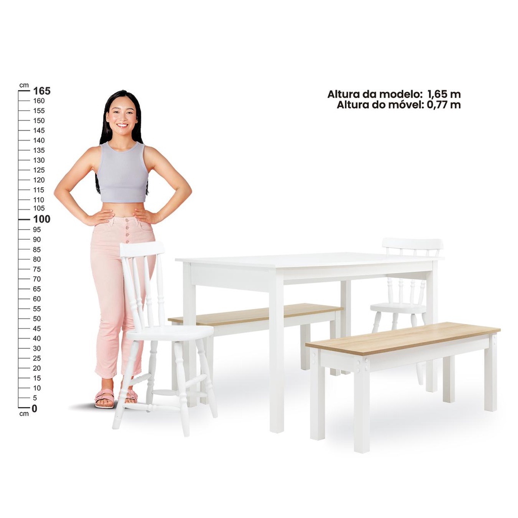 Mesa de Jantar Ditália 2Bancos 2Cad JA-220+JA-225