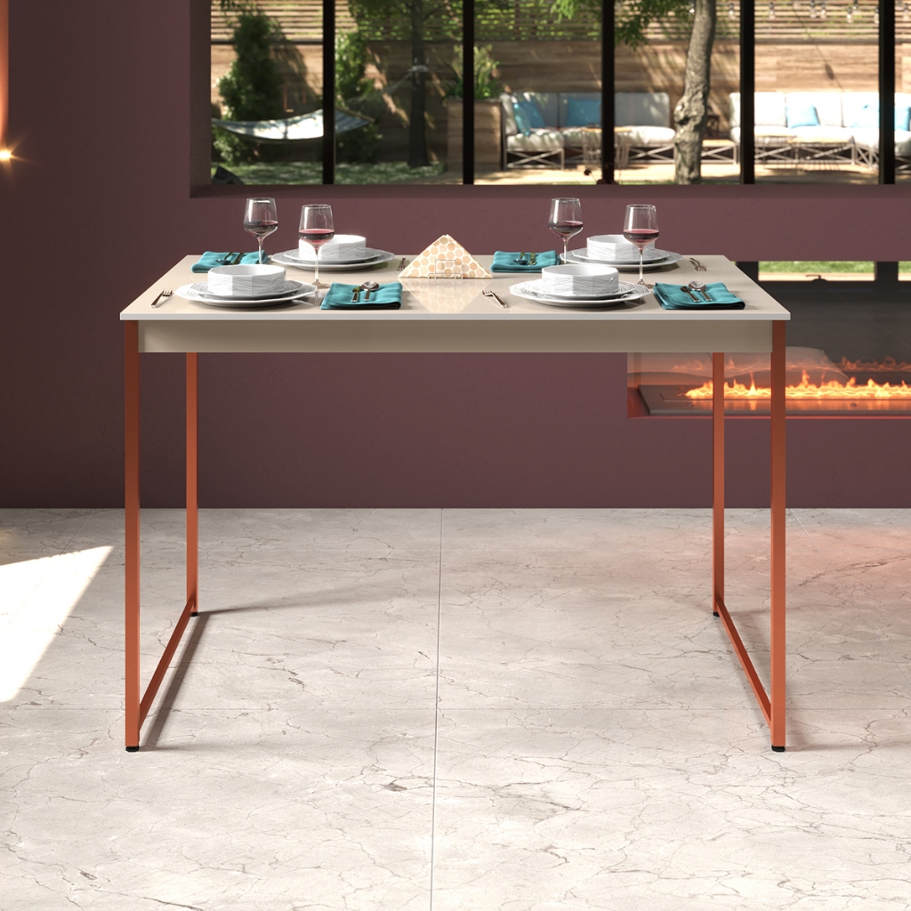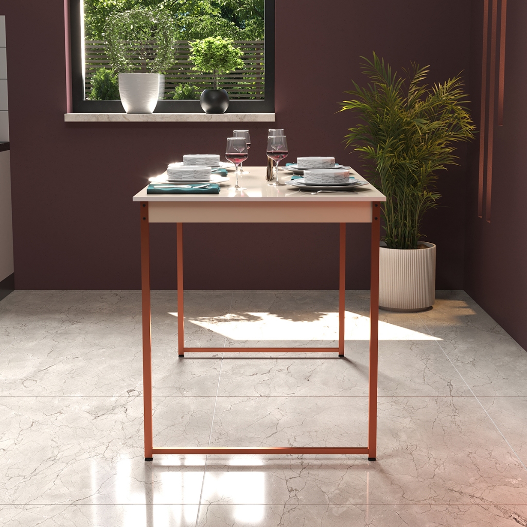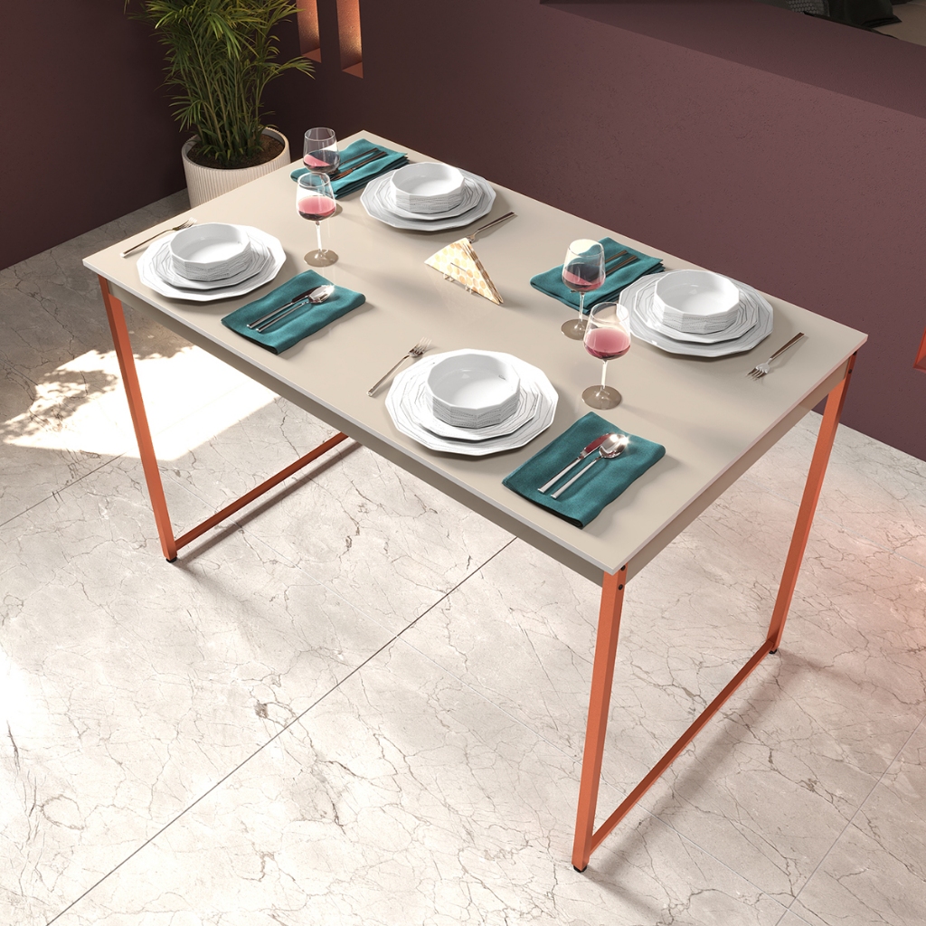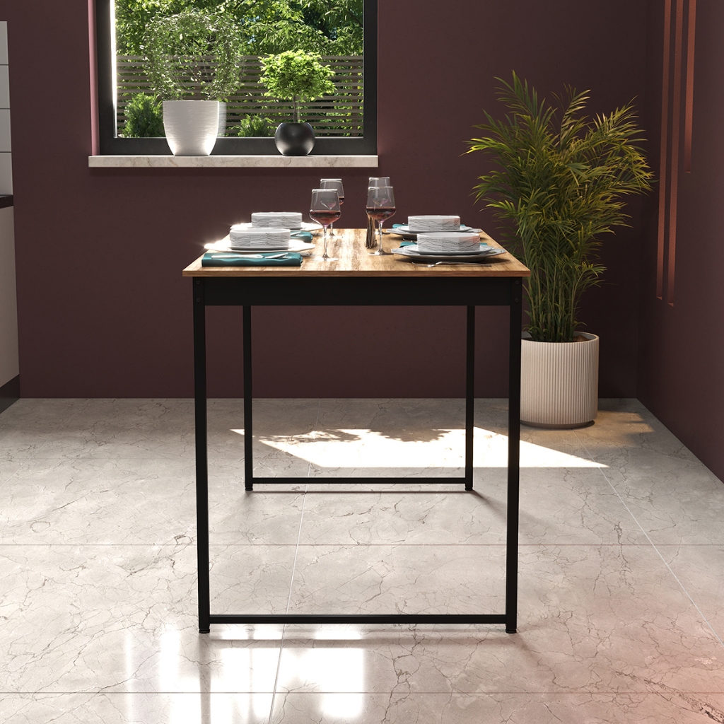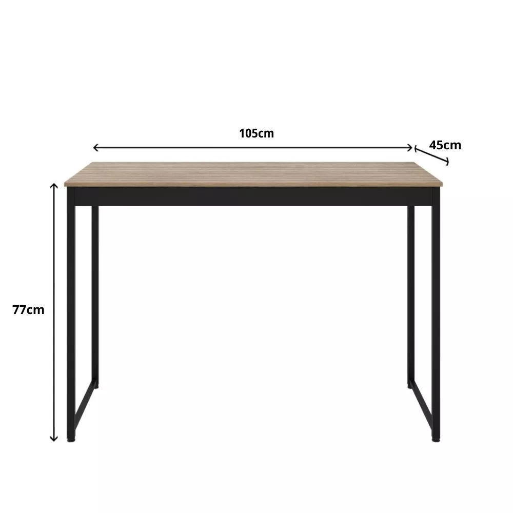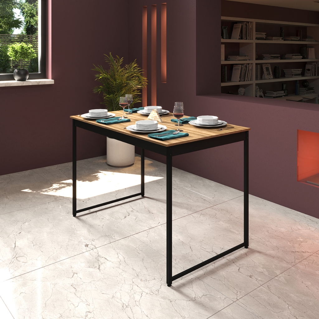 Mesa de Jantar Industrial 4 Lugares Cozinha 105 x 45 cm com Tampo de Madeira e Pés Metal ShoopMaga