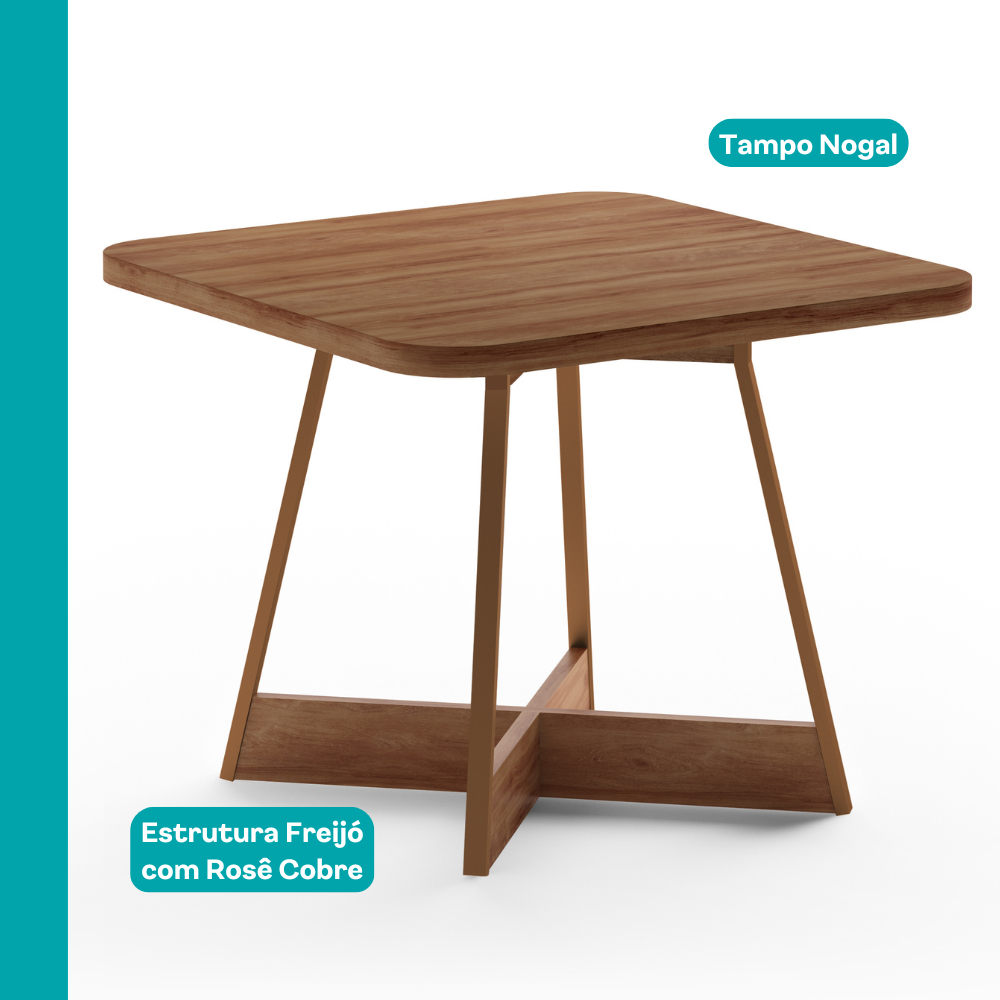 Mesa de Jantar Quadrada 90 cm Átria 1593 Carraro Nogal/Rose