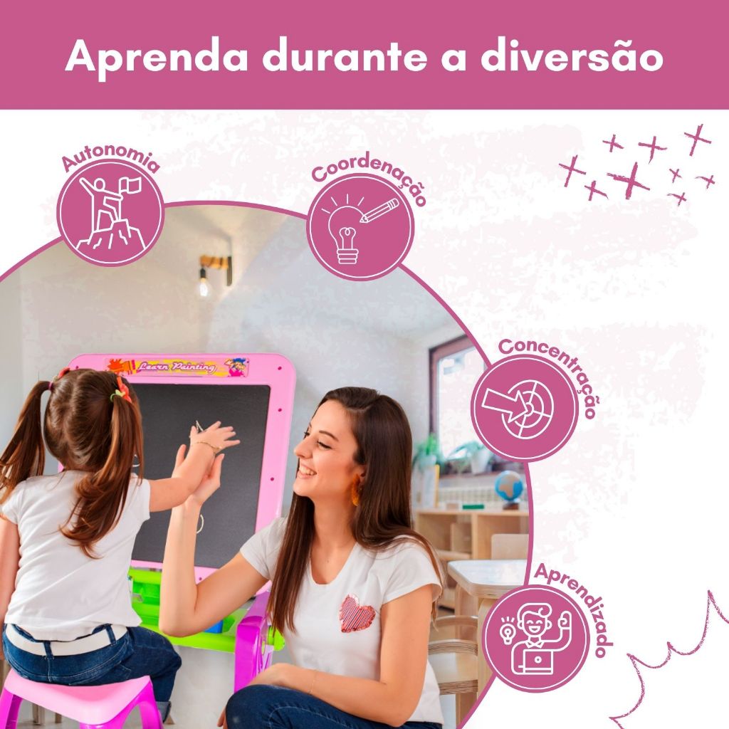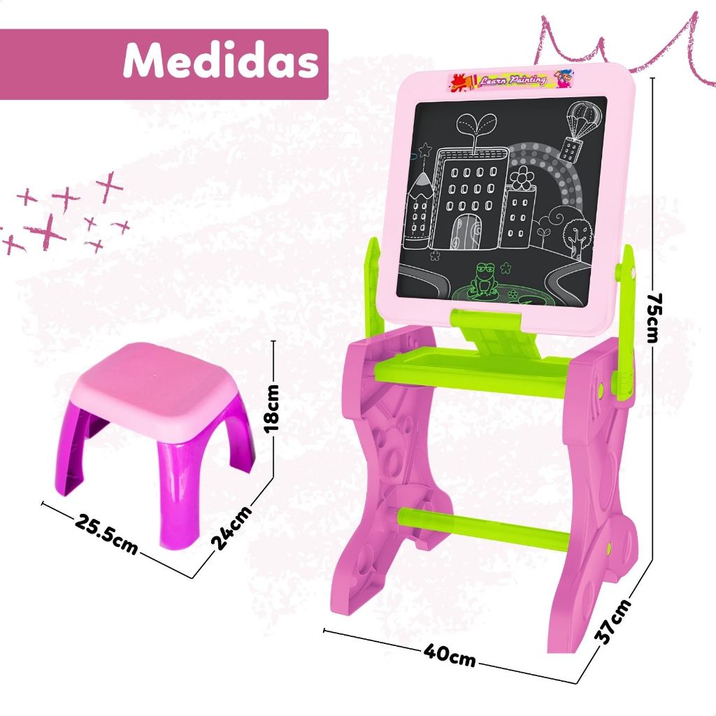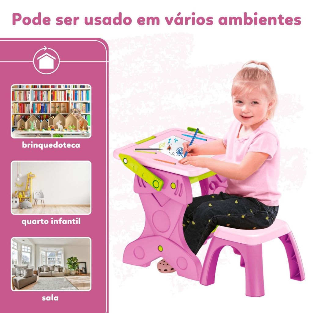 Mesinha Lousa de Desenho Infantil 2 em 1 Lousa Com Banquinho