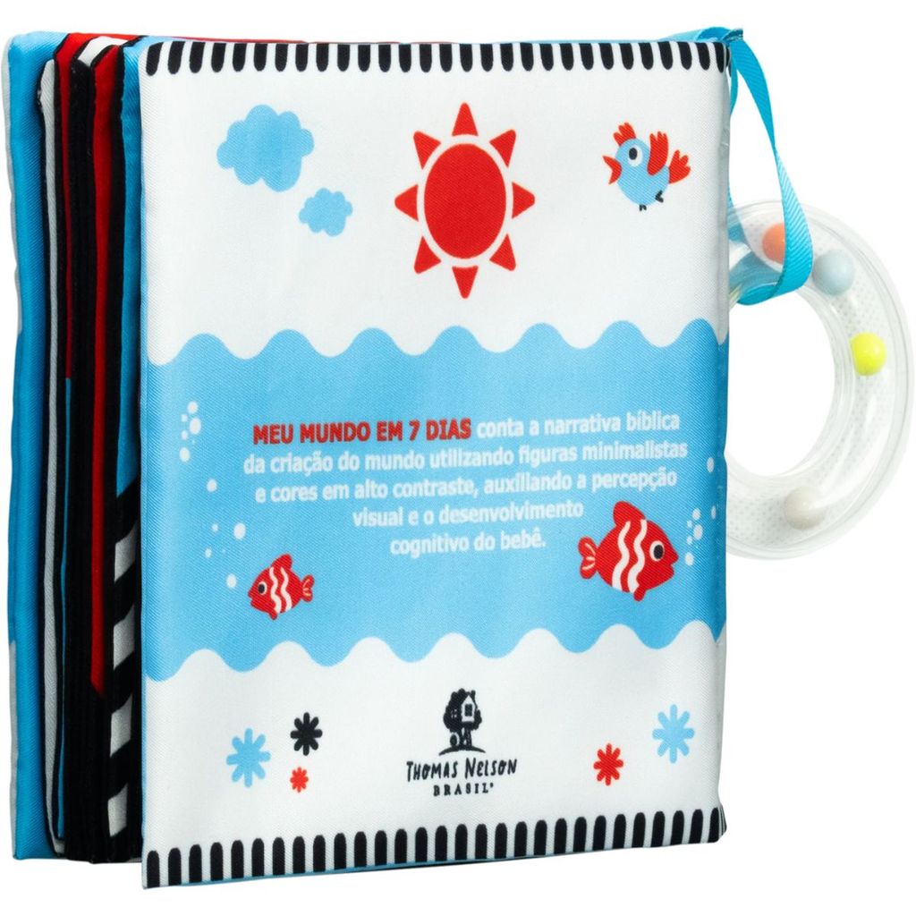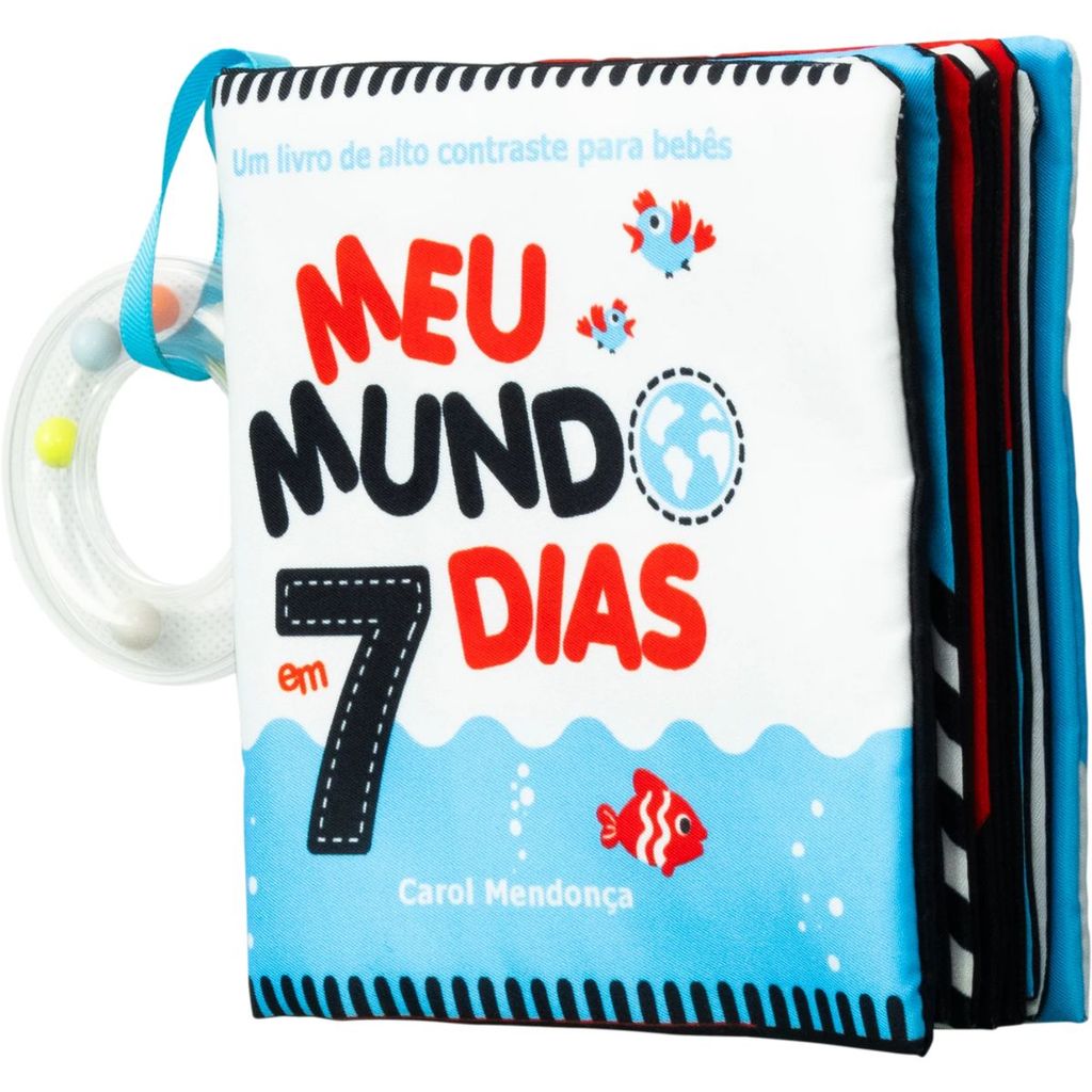 Meu mundo em 7 dias | Livrinho de pano com cores contrastantes e chocalho para bebês