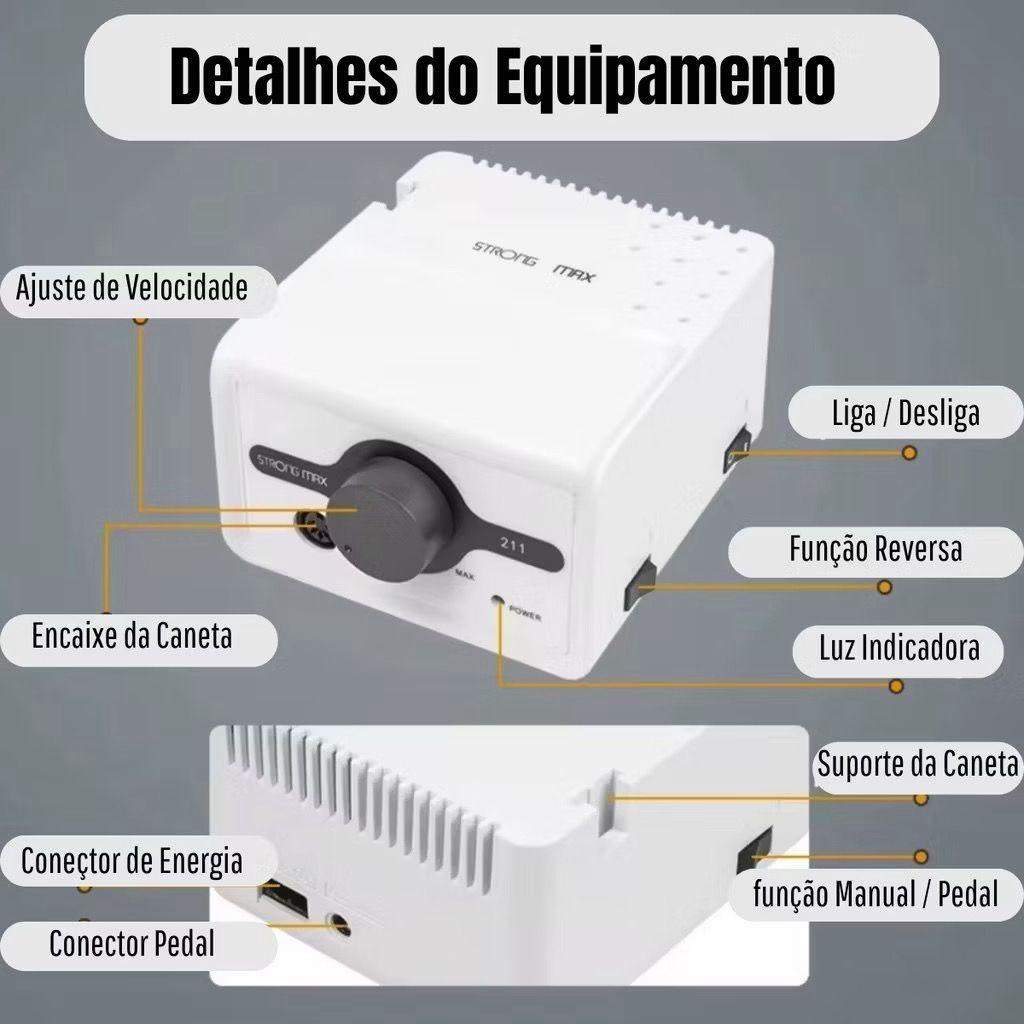 Micro Motor Lixa Eletrica Podologia Profissional 210 35 Rpm Lixa Gel bivolte 65W