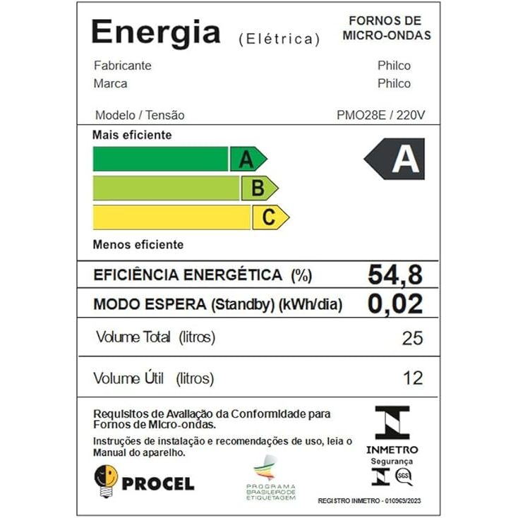 Micro-ondas Philco 25L Limpa Fácil PMO28E 1100W 220V