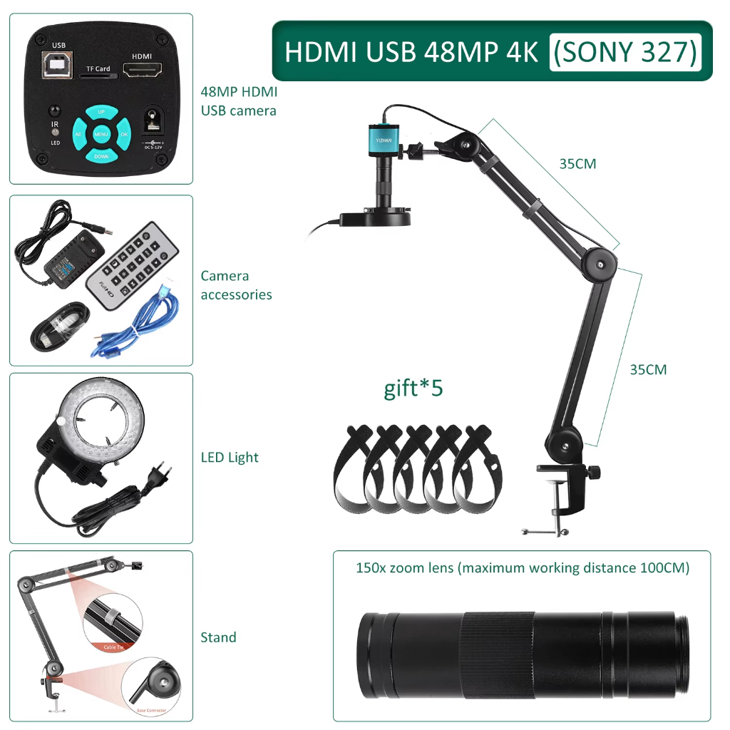 Microscópio Eletrônico HD 4K Para Soldar 48MP HDMI USB Câmera Digital Sony Sensor 150X Lente Reforçada Suporte Reduz A V