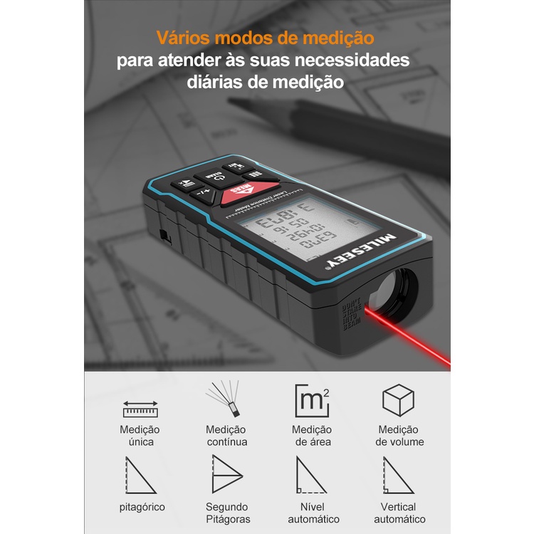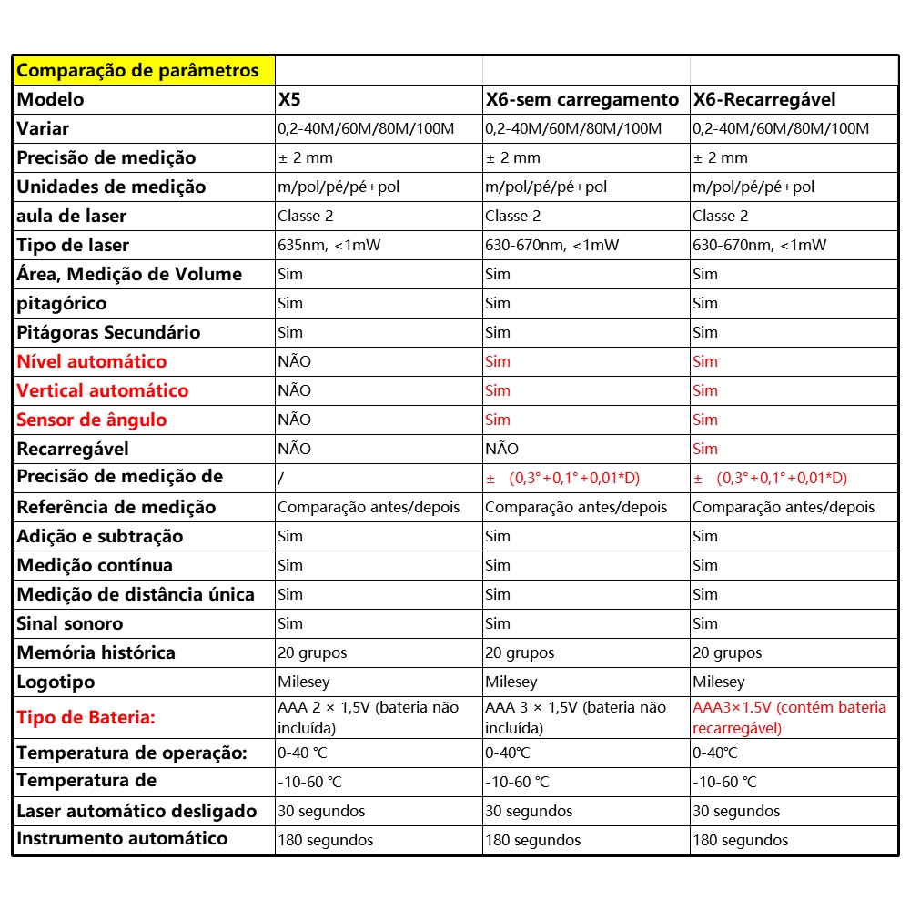 Mileseey X5 X6 Telêmero Laser 100M Medidor Recarregável Sensor De Distância Ferramentas De Medição Manual Localizador