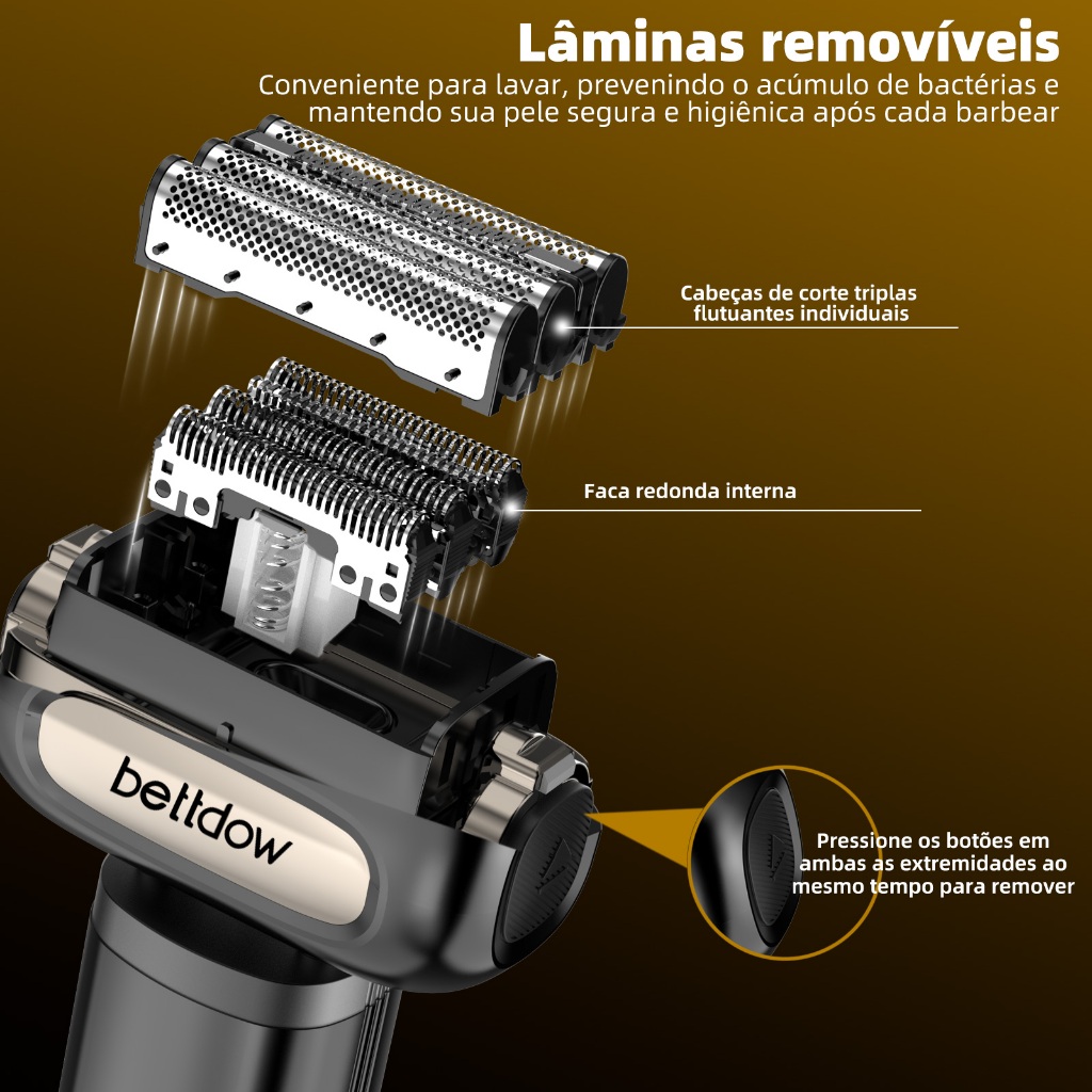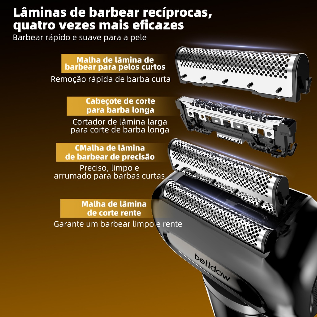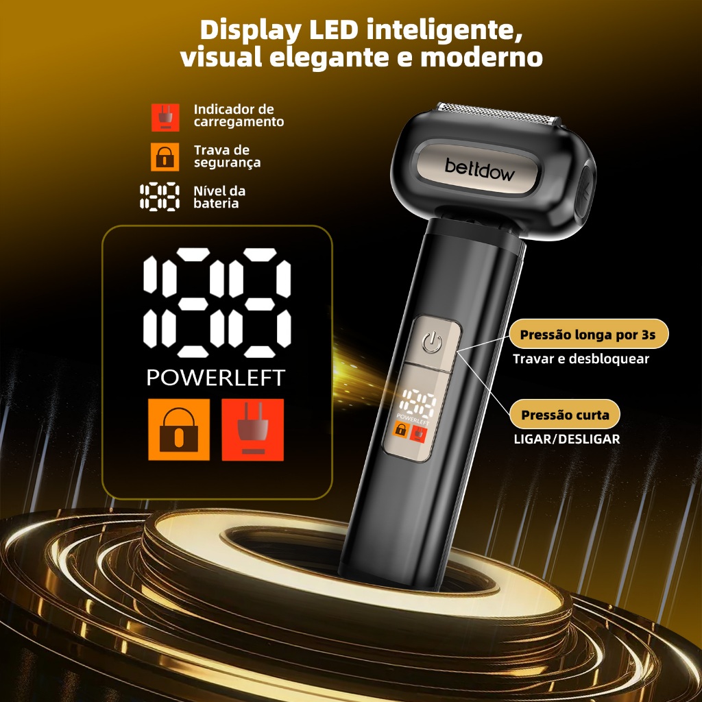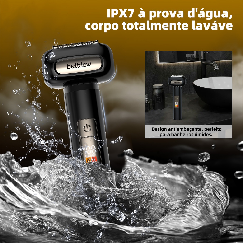 Mini Barbeador Portátil Bettdow USB 4 Lâminas 6800rpm IPX7 À Prova D'Água