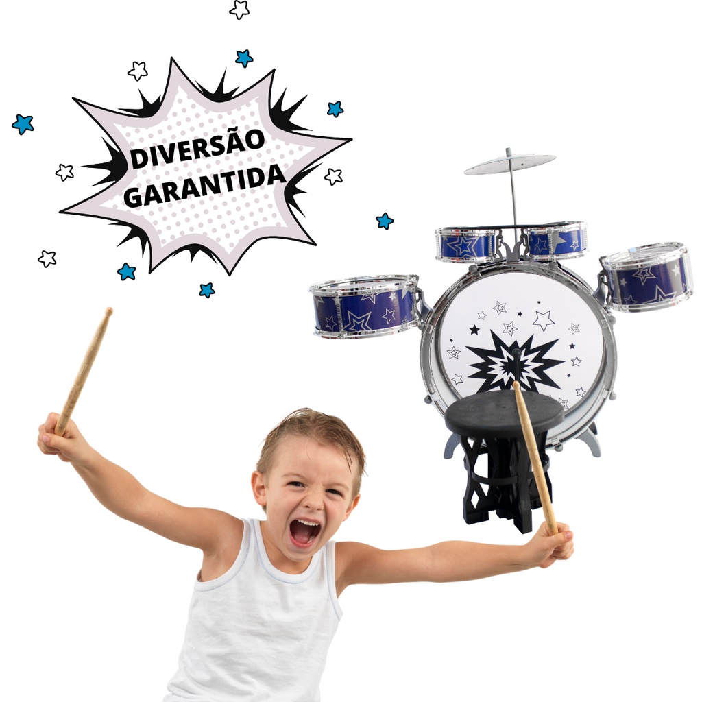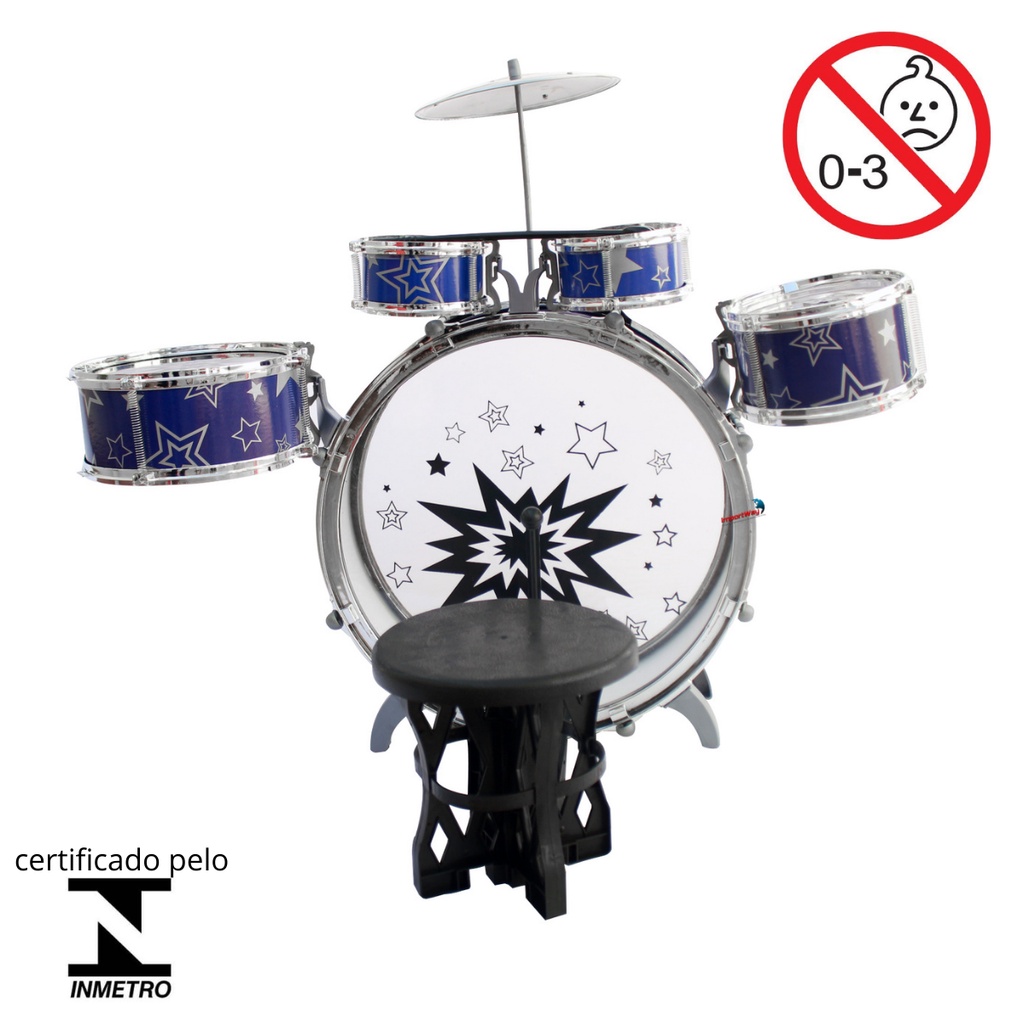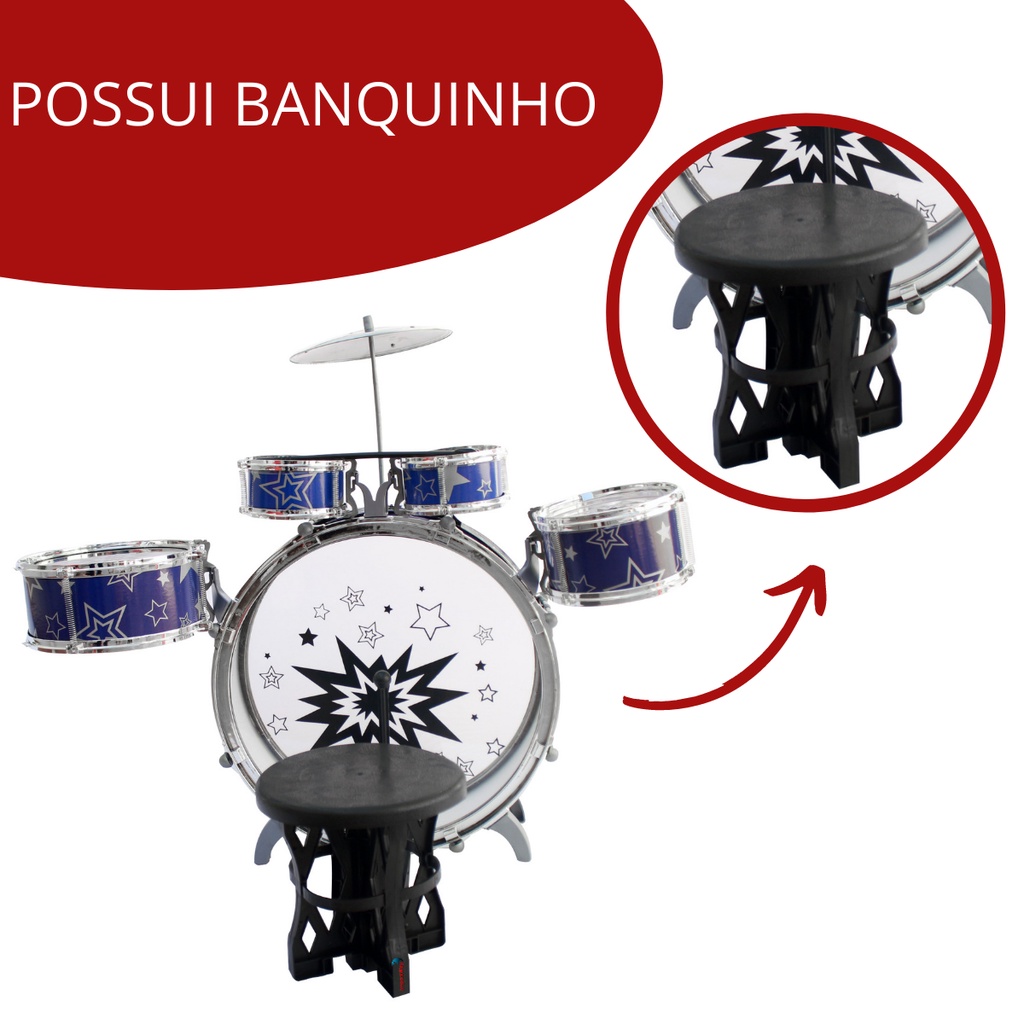 Mini Bateria Musical Infantil Tambor Baquetas Jazz Drum com Banco