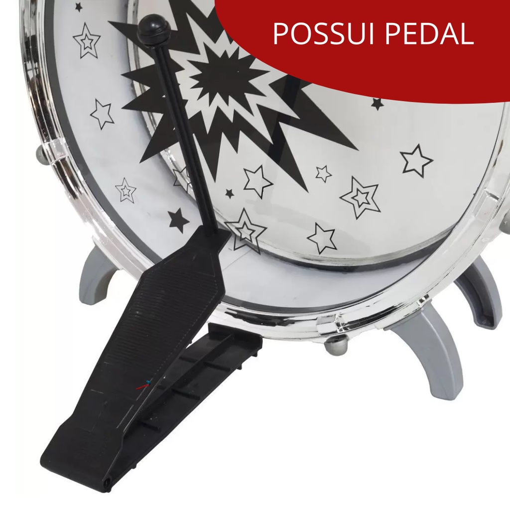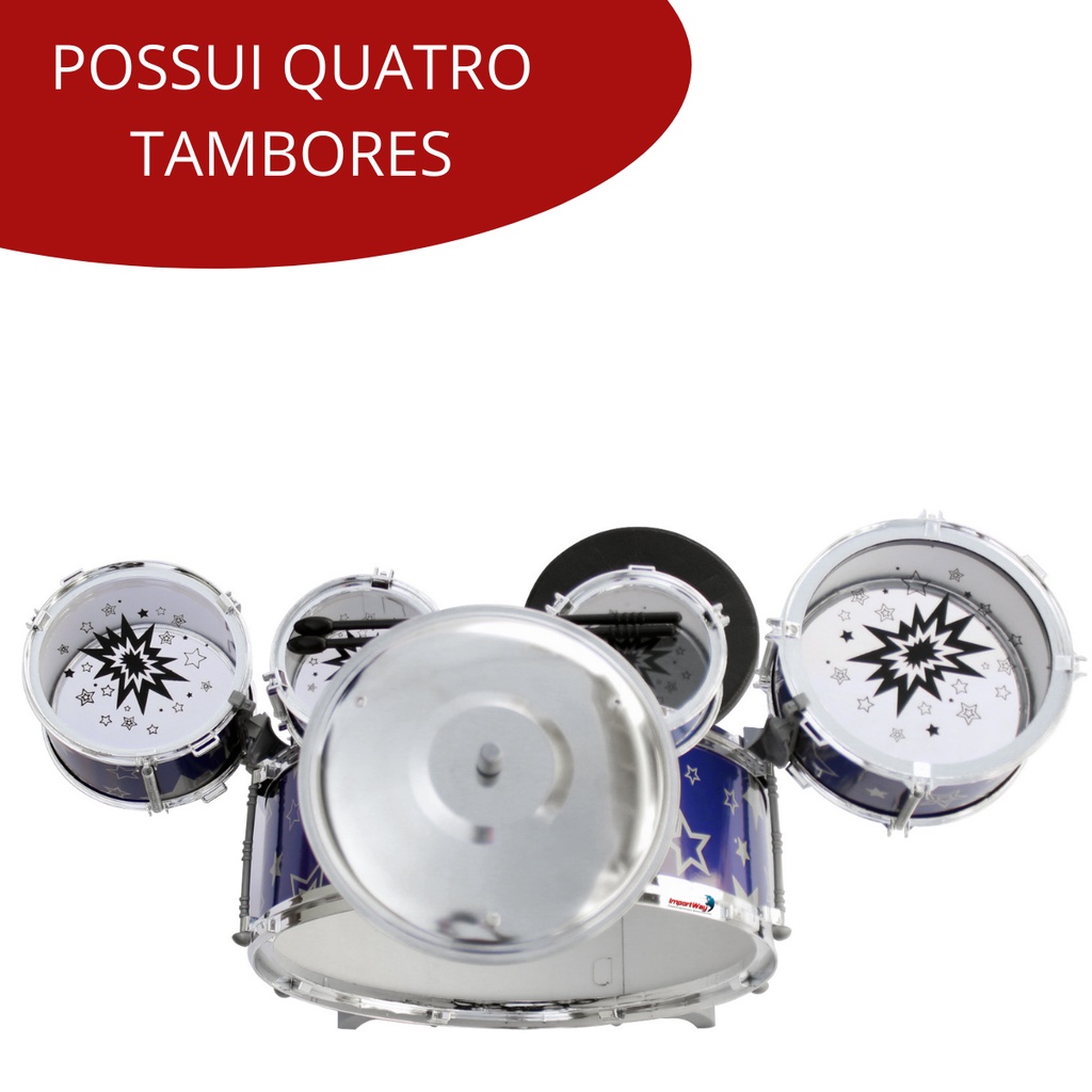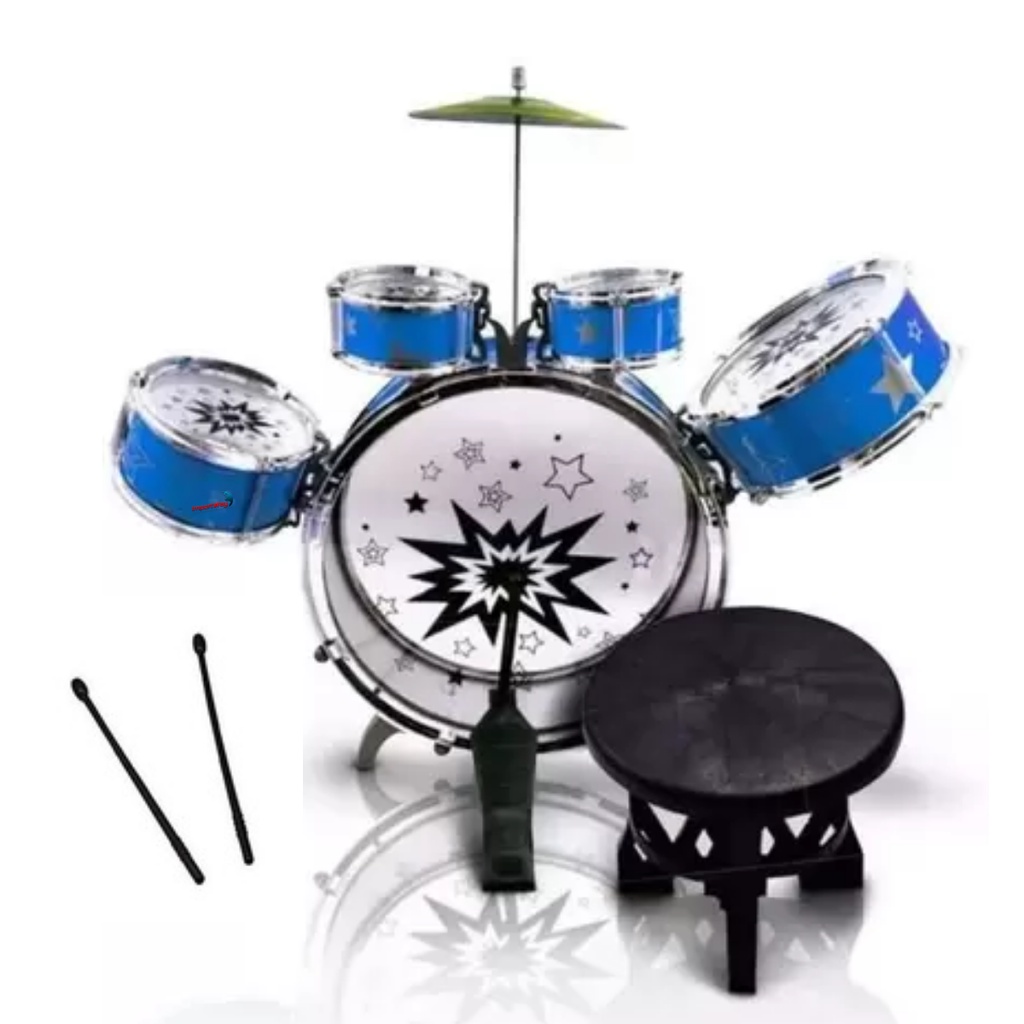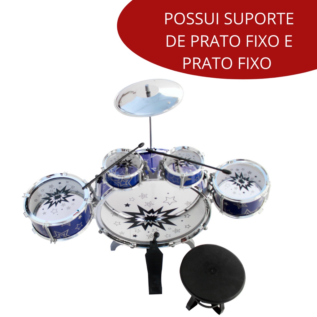 Mini Bateria Musical Infantil Tambor Baquetas Jazz Drum com Banco