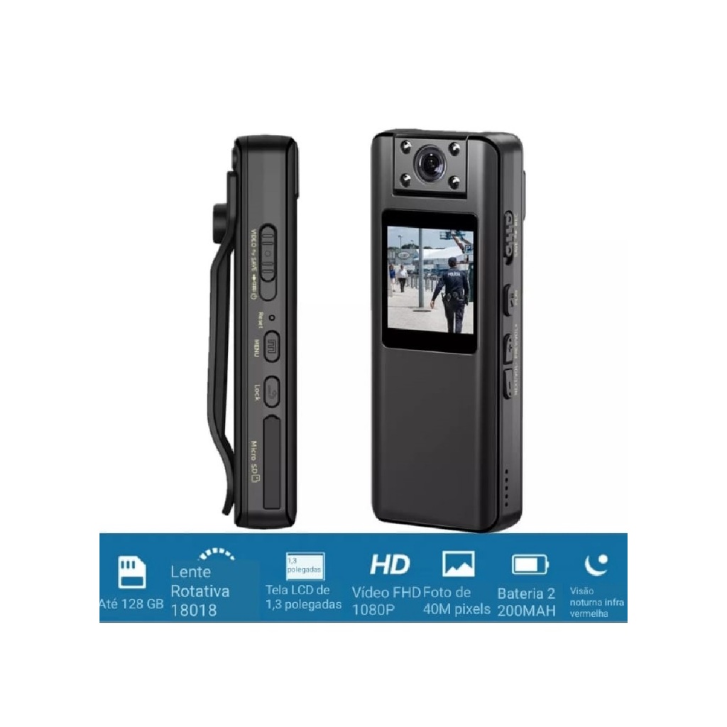 Mini Câmera A22 Full HD 1080p Polícia Bodycam Segurança Corpo