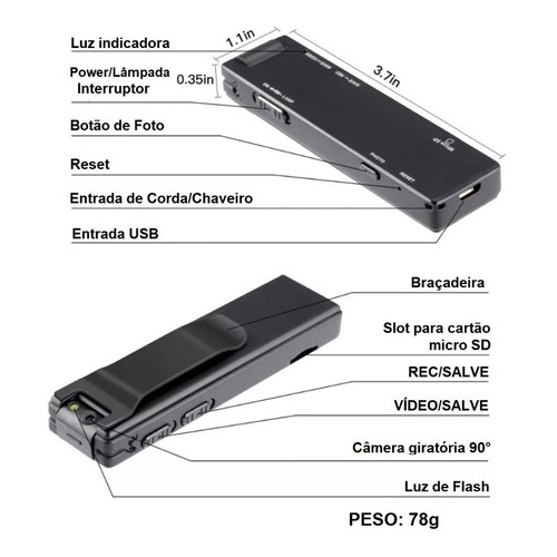 Mini Câmera Secreta Sem Fio Bateria HD 1080p Bateria 1100mAh 90° A3