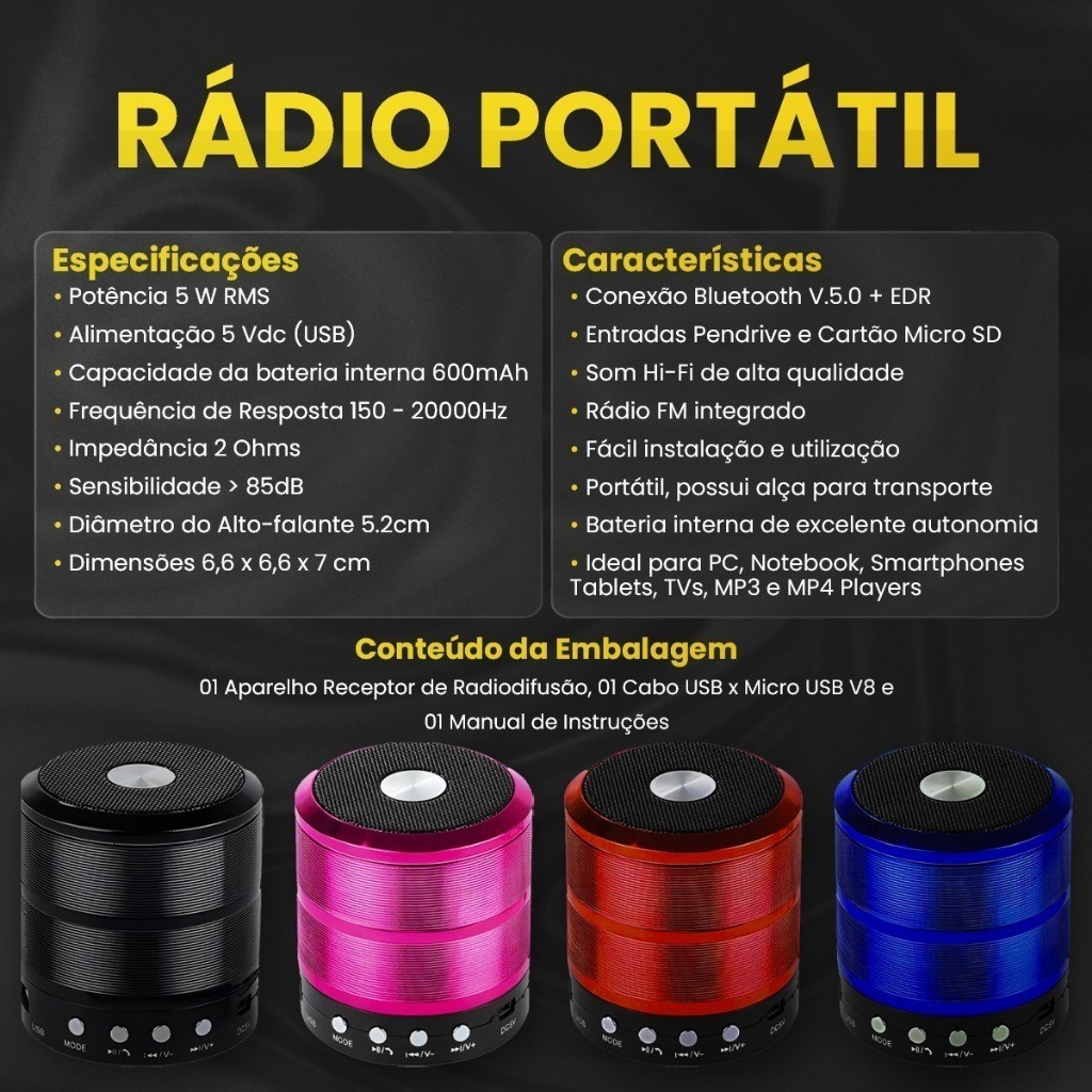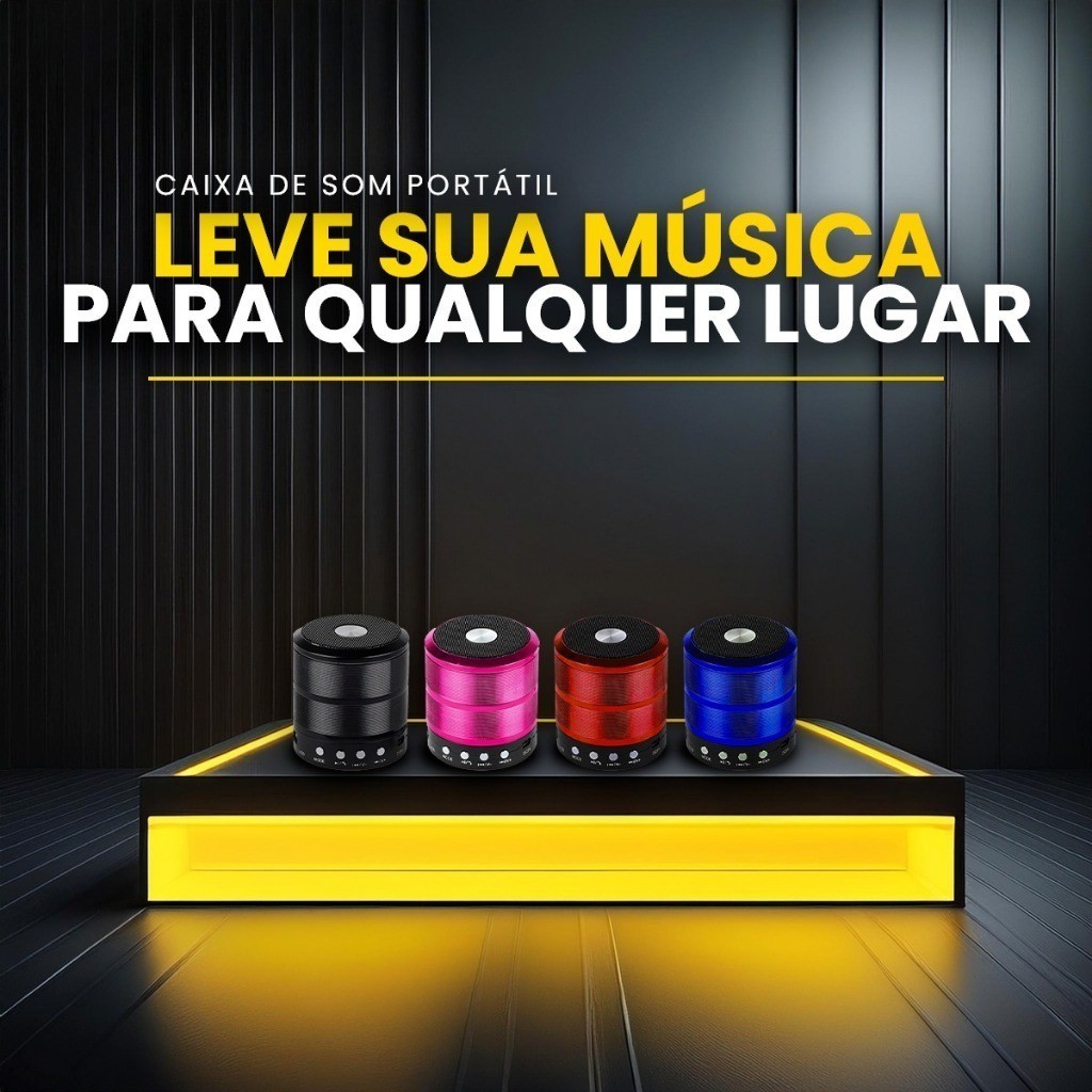 Mini Caixa de Som Bluetooth Portátil 887 Com Rádio FM/ USB/ SD/ Grave Potente e Bateria Recarregável - WYL