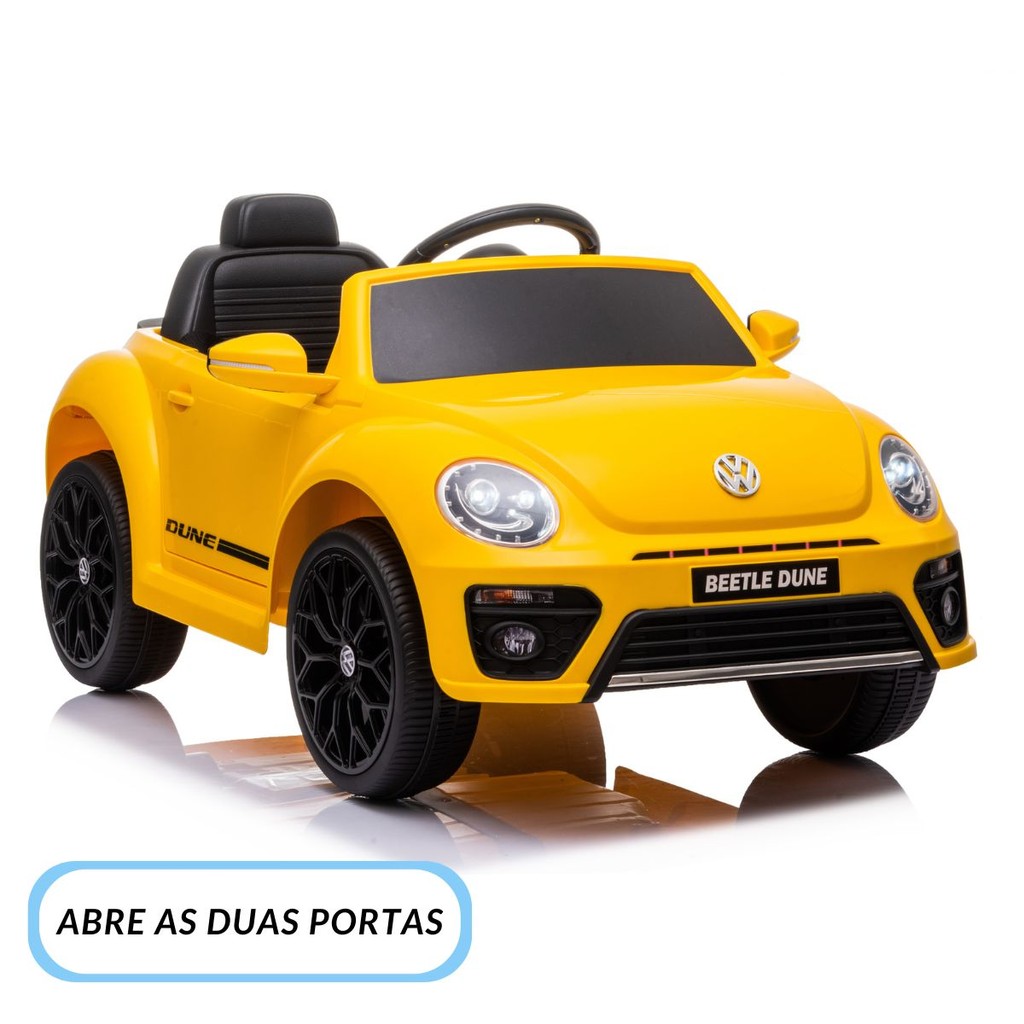 Mini Carrinho Elétrico Infantil VW Beetle Dune Amarelo 6v Suporta 25kg Luzes/Som c/ Cinto Importway