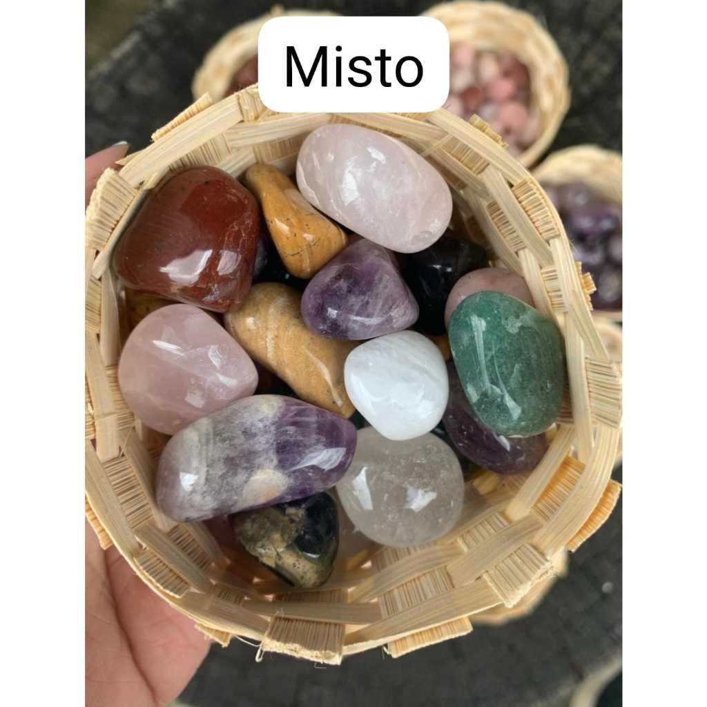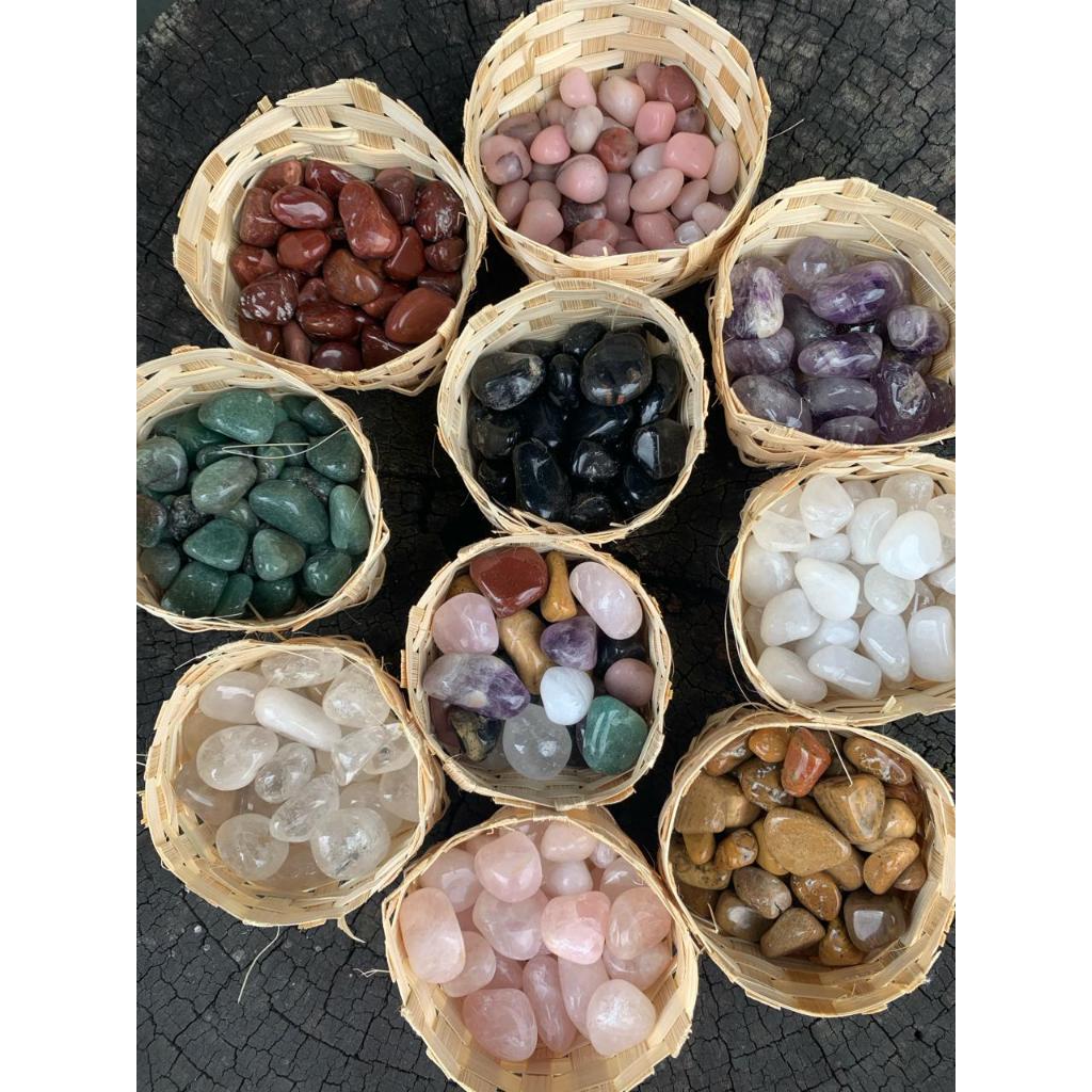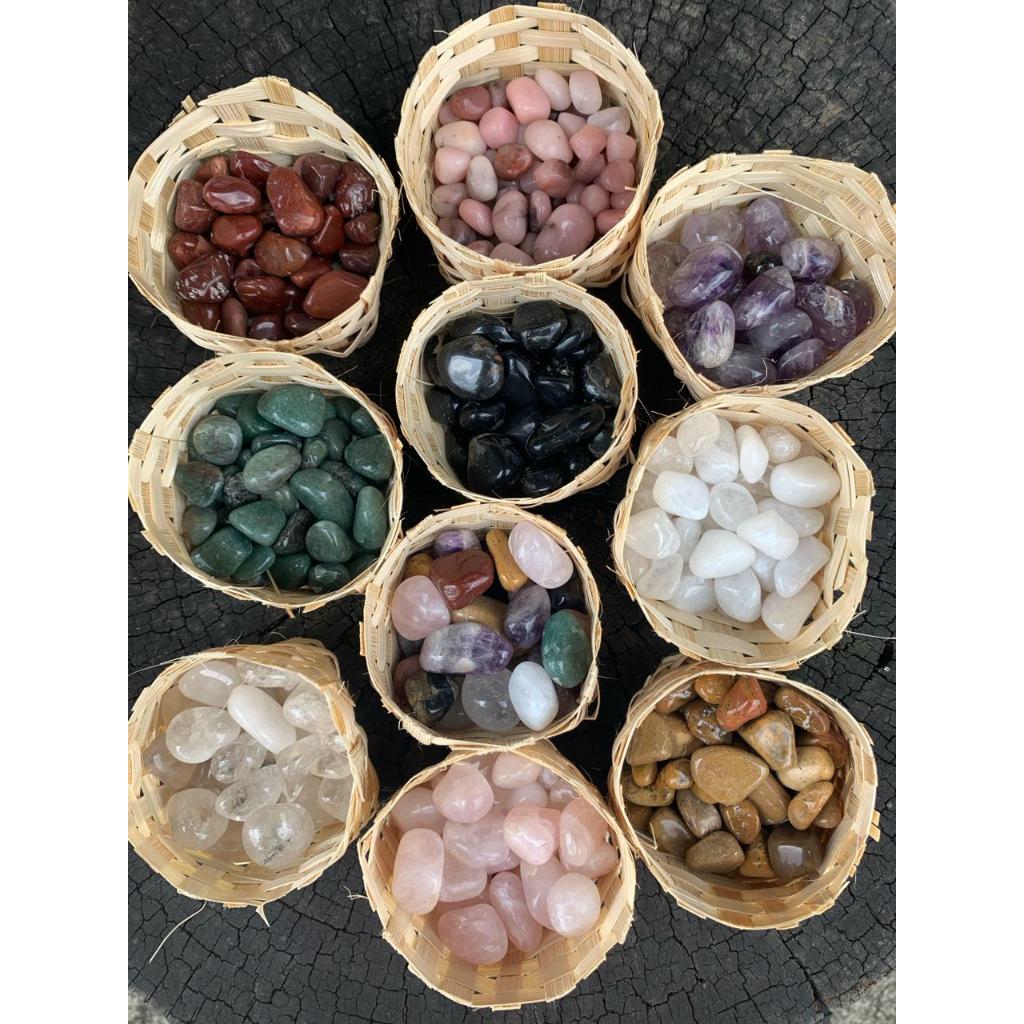 Mini Cesto Pedrinhas Roladas (2cm): Ametista, Quartzo Rosa - Verde - Leitoso, Jaspe Vermelho - Amarelo, Cristal, Ônix,