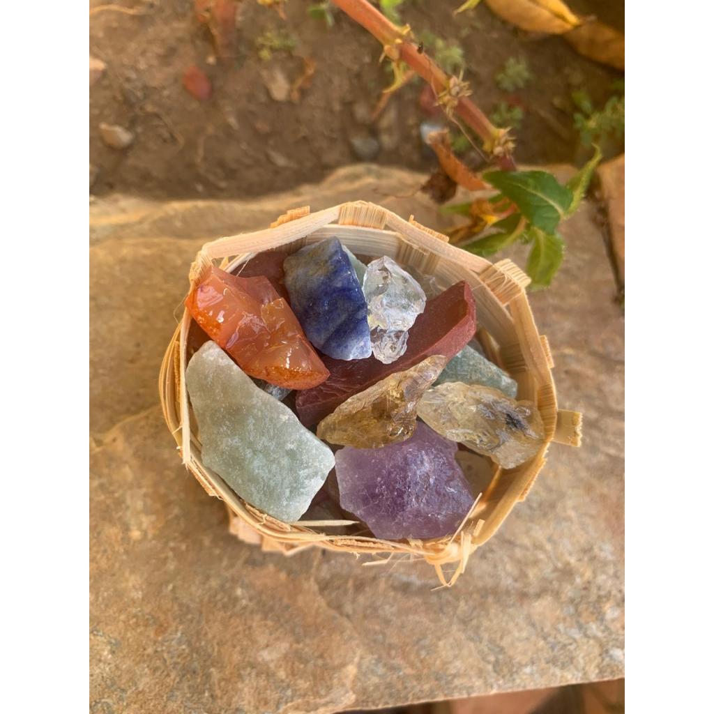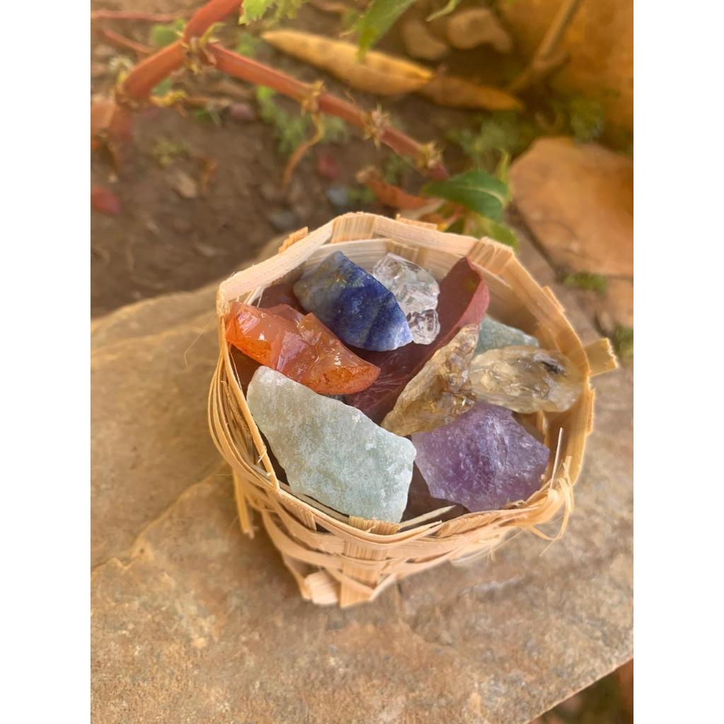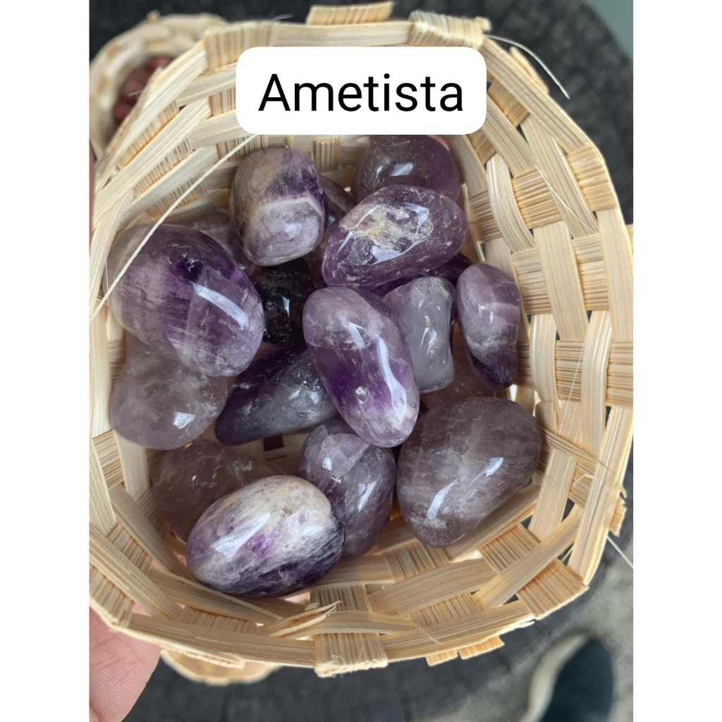 Mini Cesto Pedrinhas Roladas (2cm): Ametista, Quartzo Rosa - Verde - Leitoso, Jaspe Vermelho - Amarelo, Cristal, Ônix,