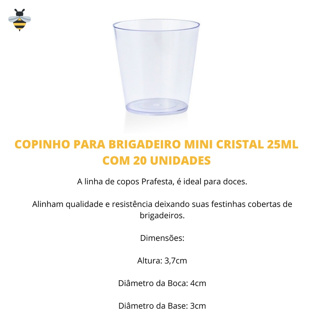 MO - Mini Copo Para brigadeiro Cristal 25ml Com 20 Unidades - Prafesta