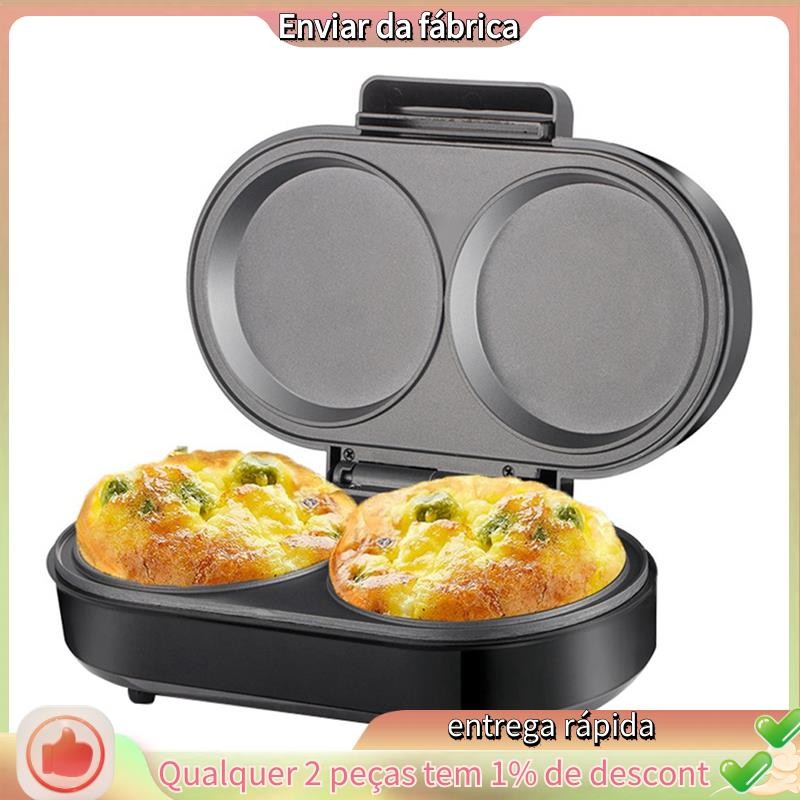 Mini Fabricante De Omelete Duplo Redondo Grades Antiaderentes Faz 2 Chaffles Individuais Personalizados Para Café Da Man