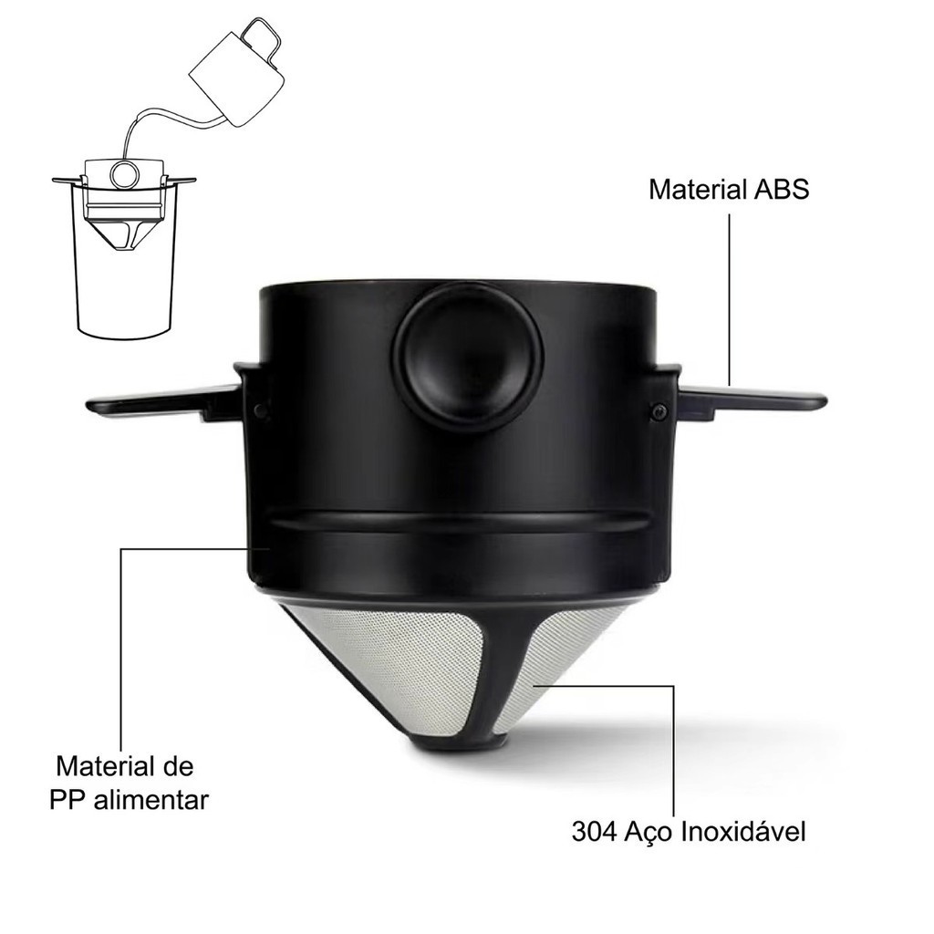Mini Filtro de Café Portátil com Malha Inox – Reutilizável, Sem Papel, Para Copos e Canecas marisa