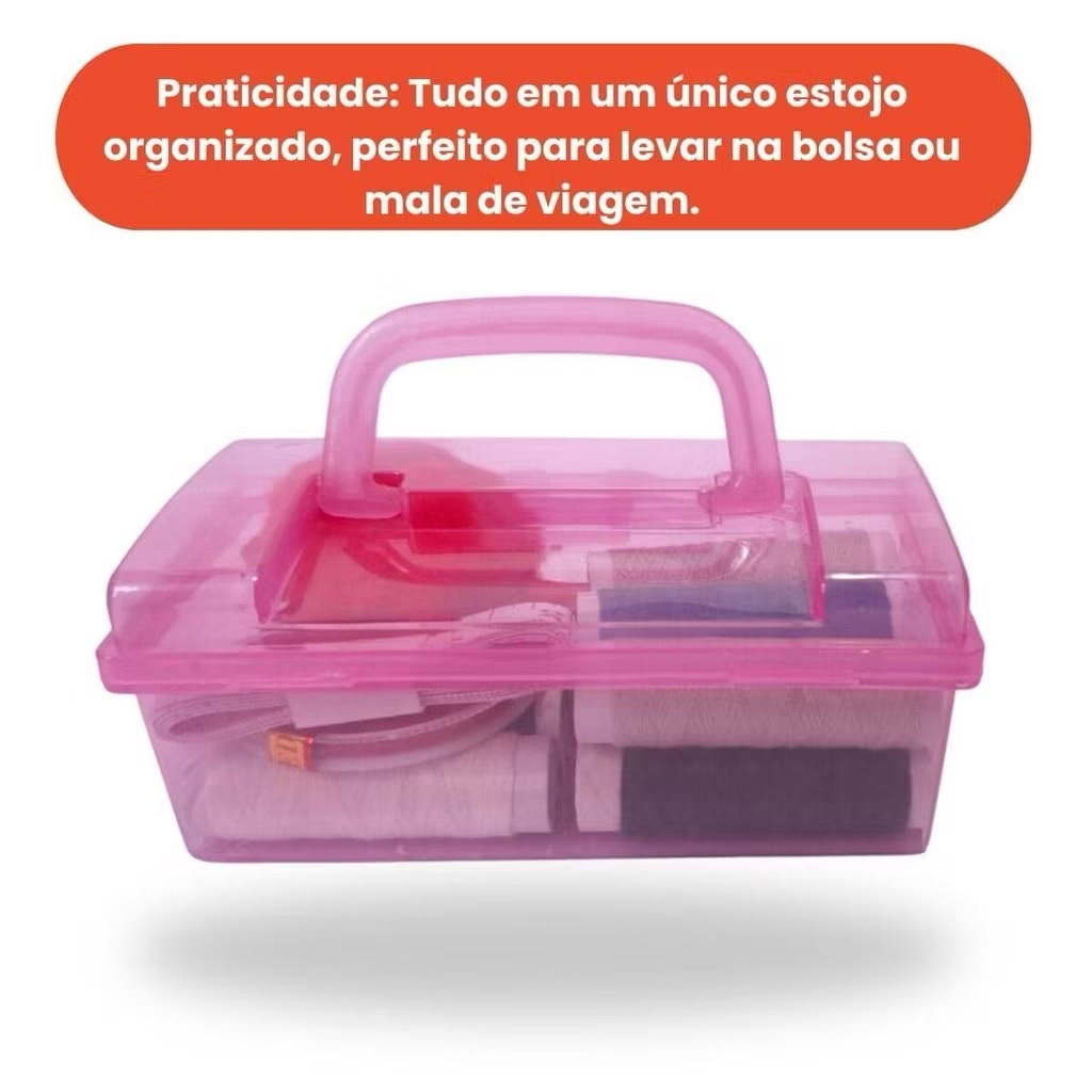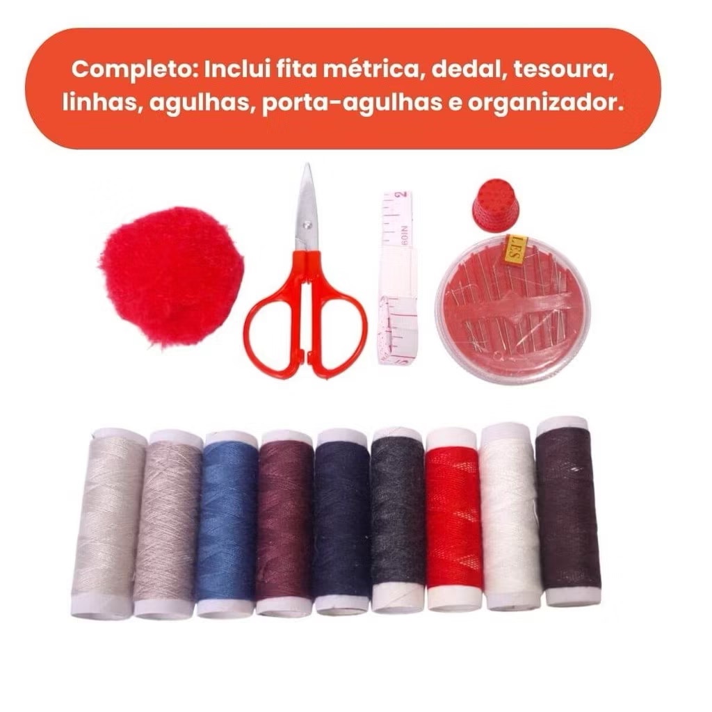 Mini Kit de Costura Maletinha Colorido Tesoura Linhas Portátil Viagem Emergencia