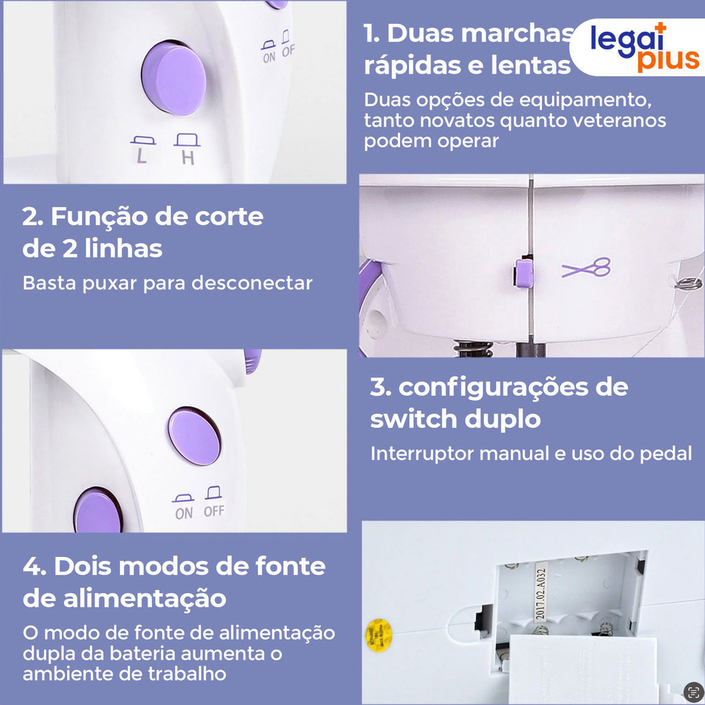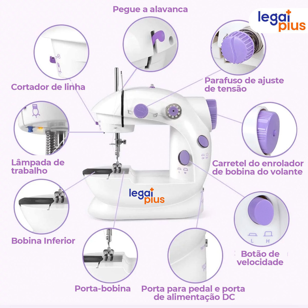 Mini Máquina De Costura Portátil Com Pedal Elétrico Costureira Bivolt 110V/220V