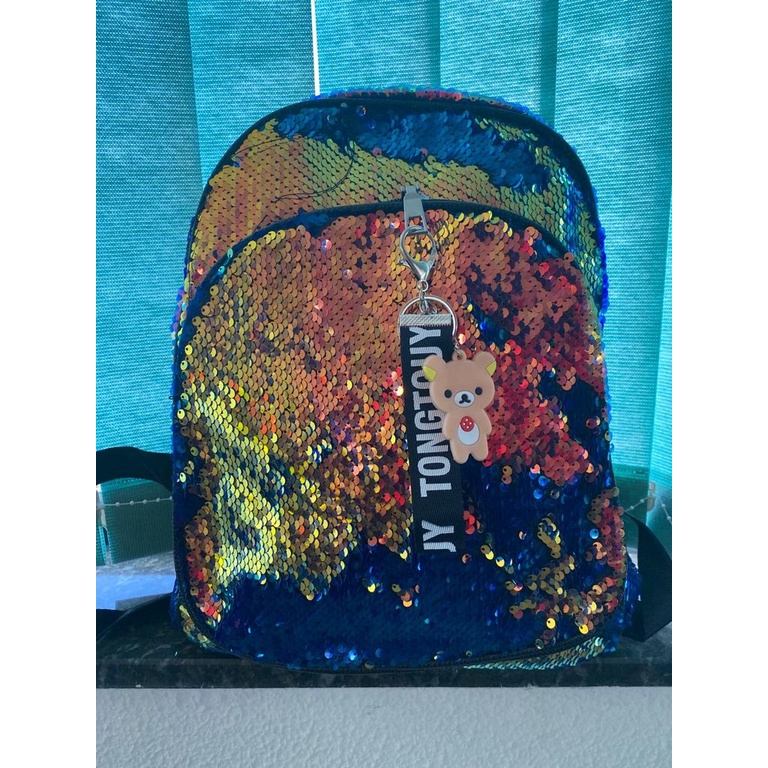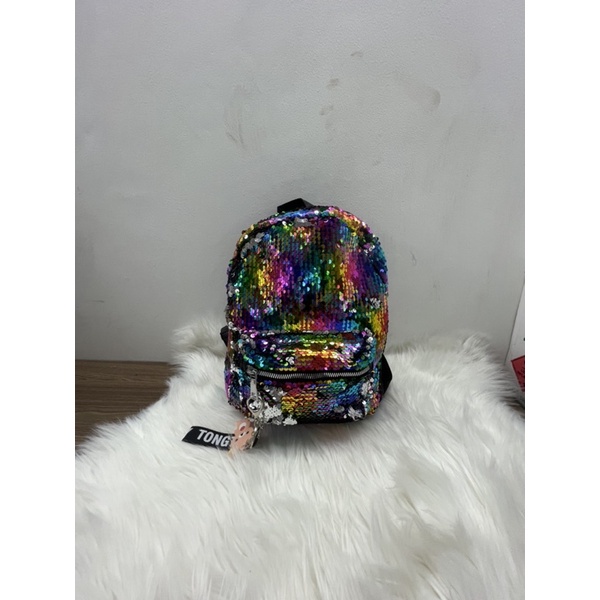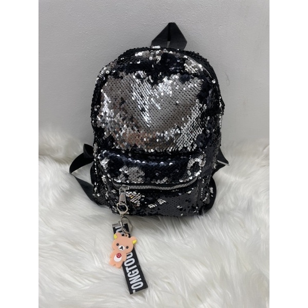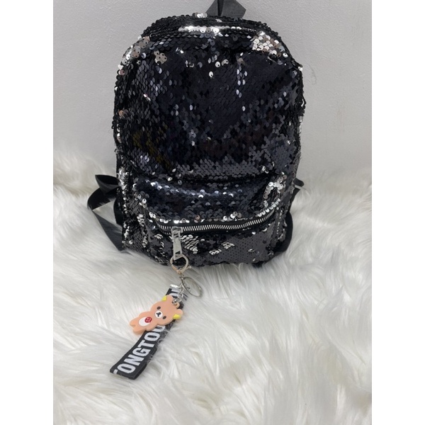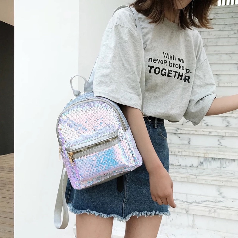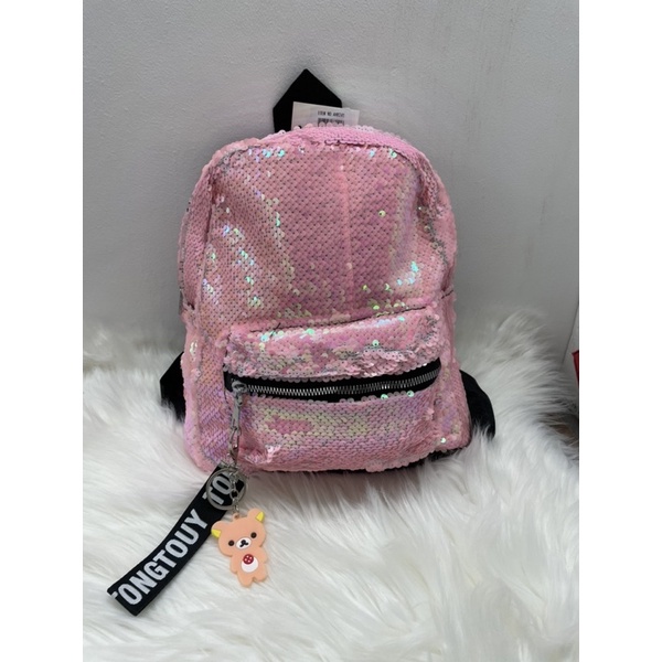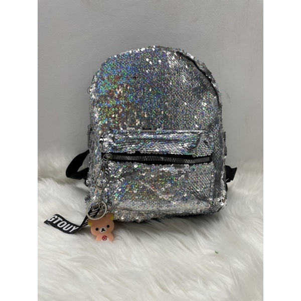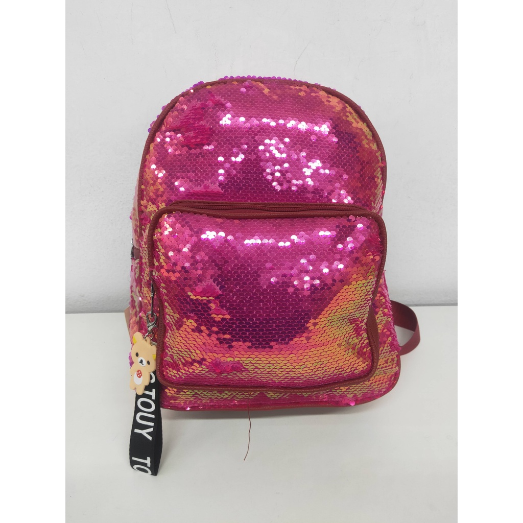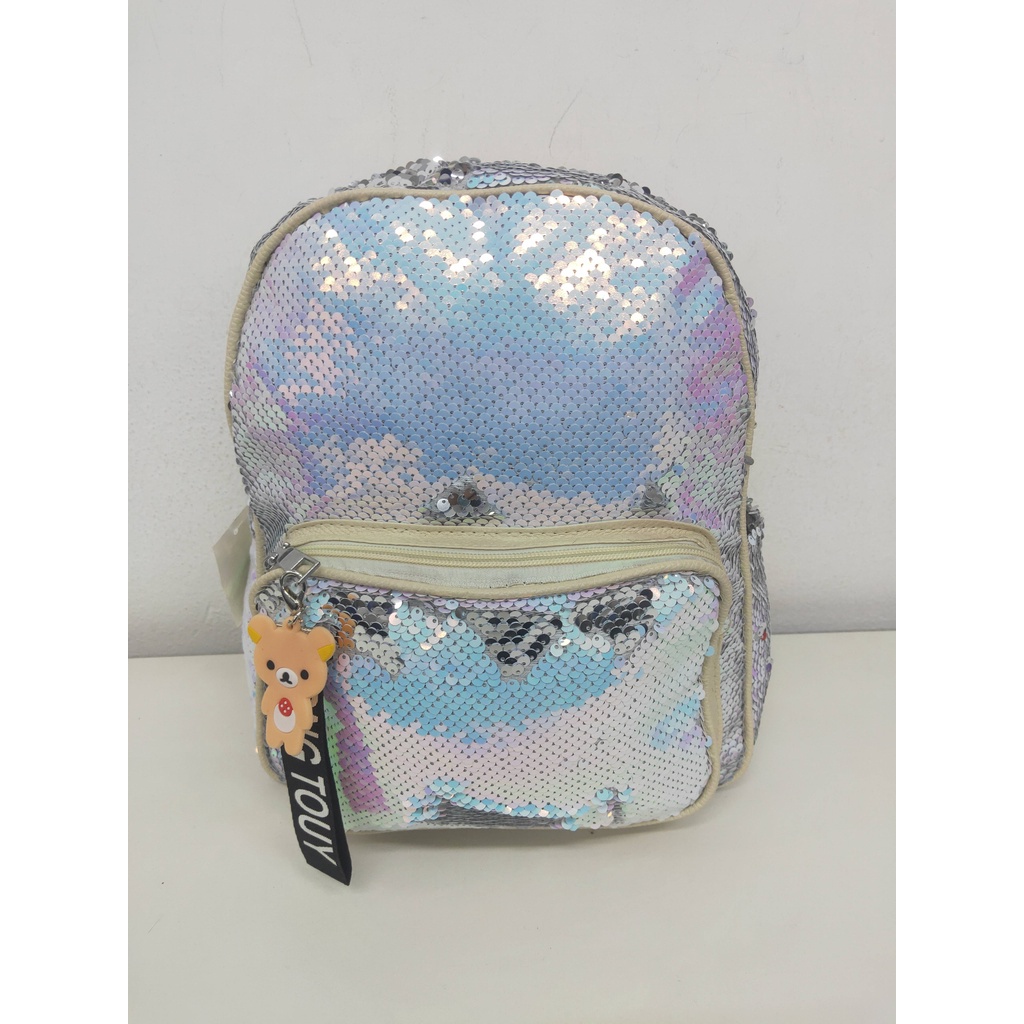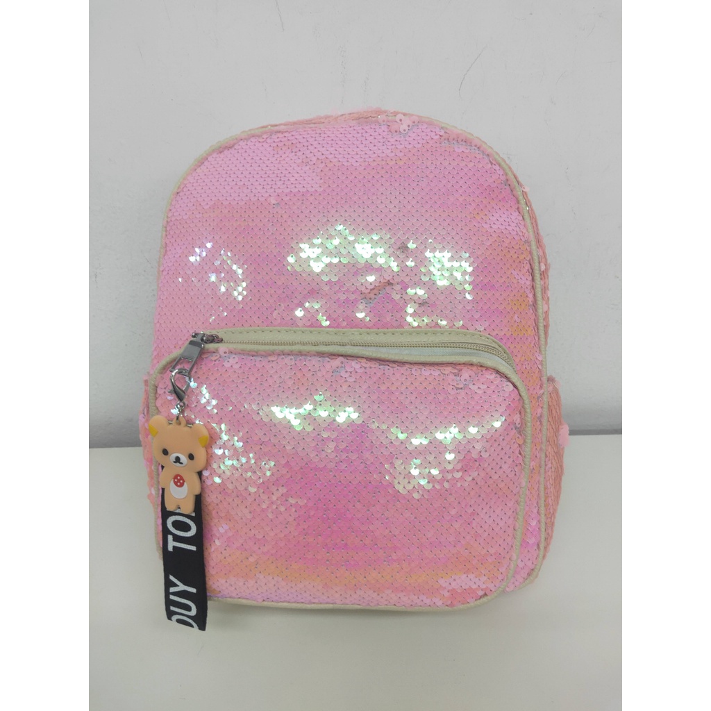 Mini MOCHILA FEMININA E INFANTIL DE LANTEJOLA PAÊTE 2 CORES ZIPER PRATA C /CHAVEIRO