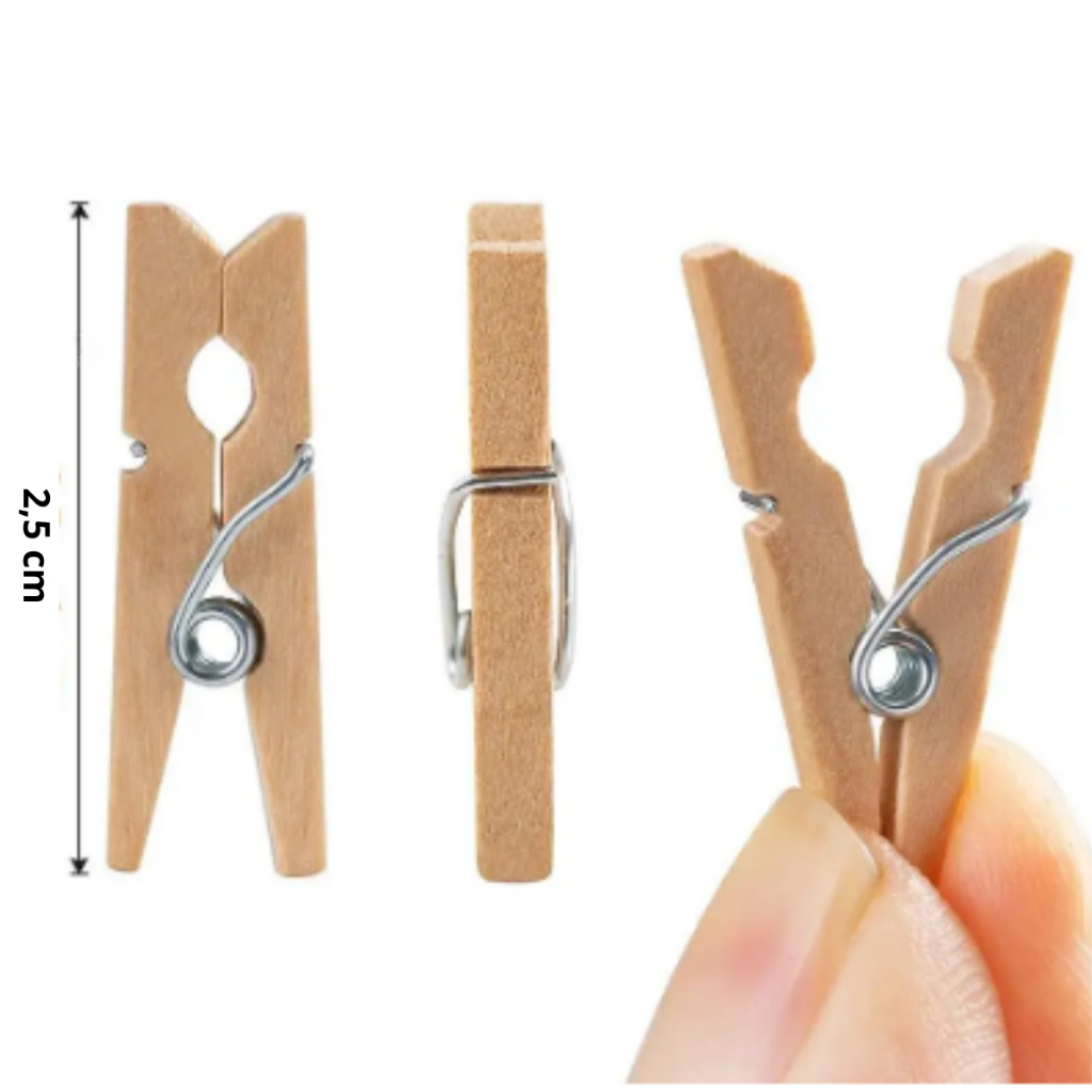 Mini Prendedor de Madeira Natural 2,5cm - 50 Unidades - Rizzo Distribuidora