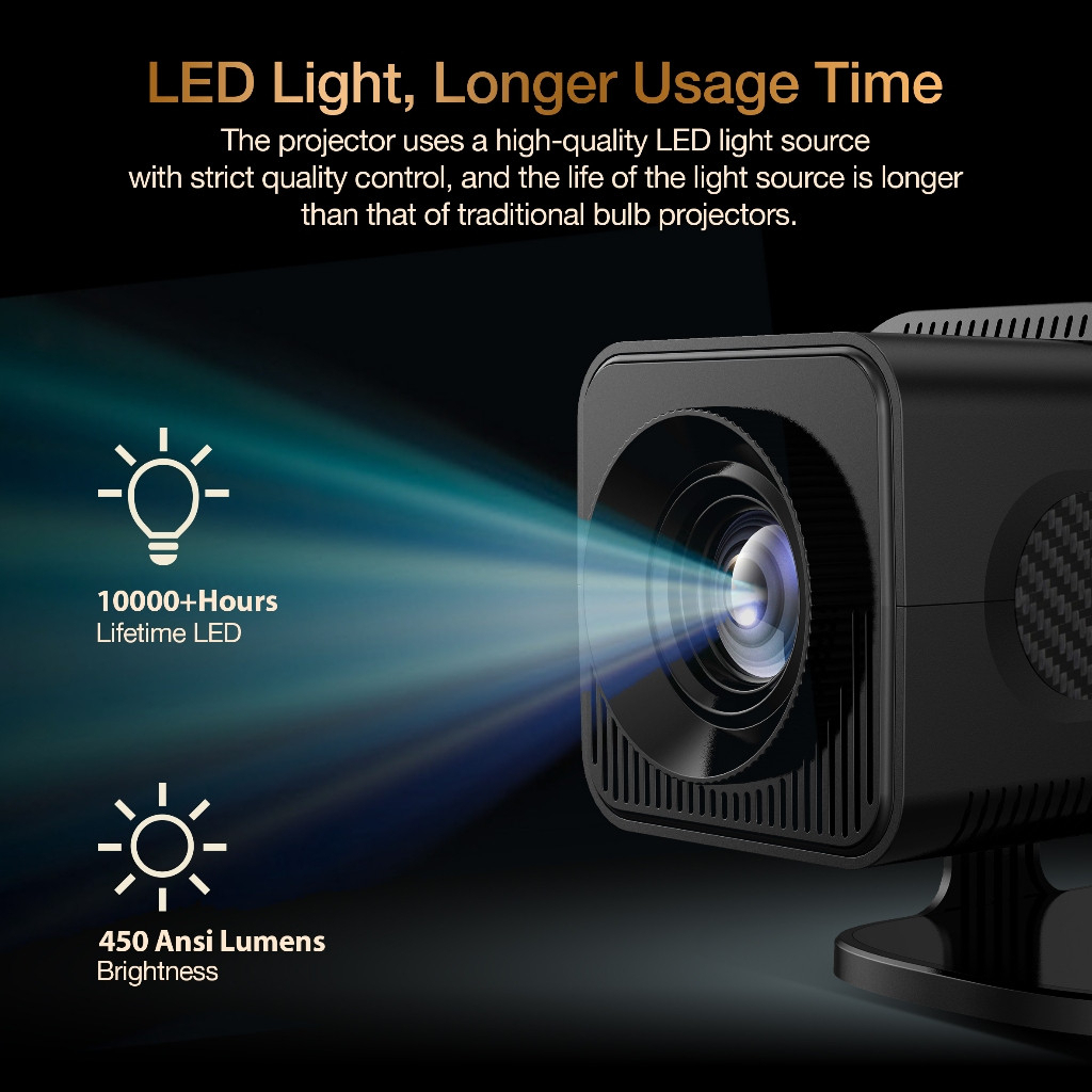 Mini Projetor de Cinema Portátil, 4K, Android HY 320 Full HD 1280x720P Bluetooth Wi-fi,