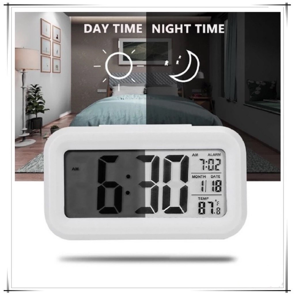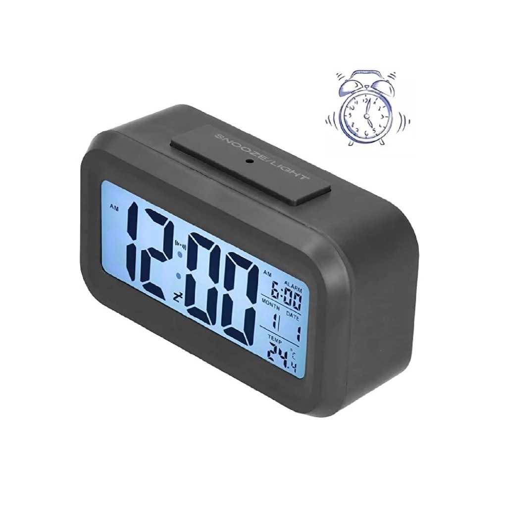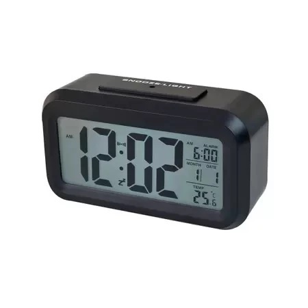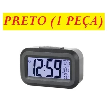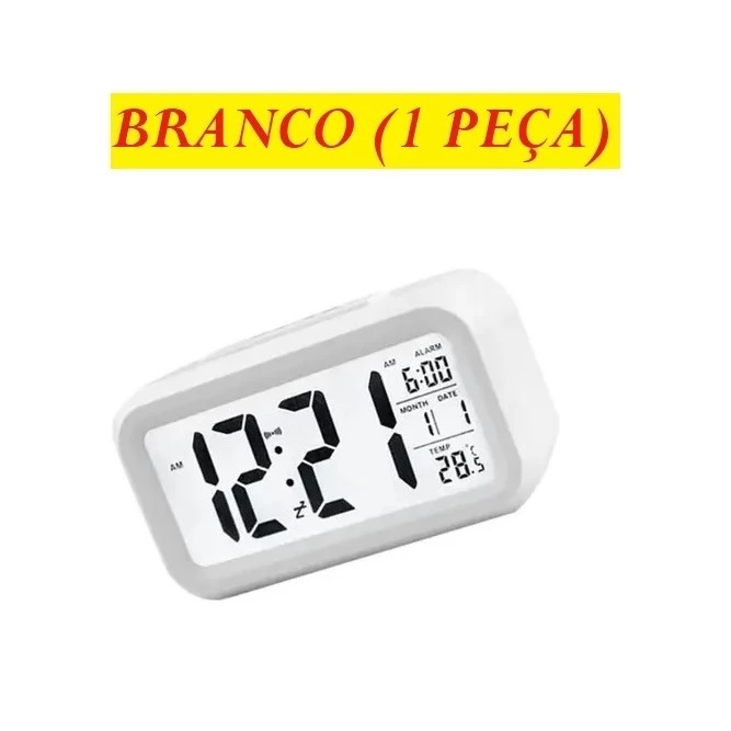 Mini Relógio Digital 8x6Cm Preto Ou Branco Com Led Temperatura Alarme Data e Mês Fácil E Prático