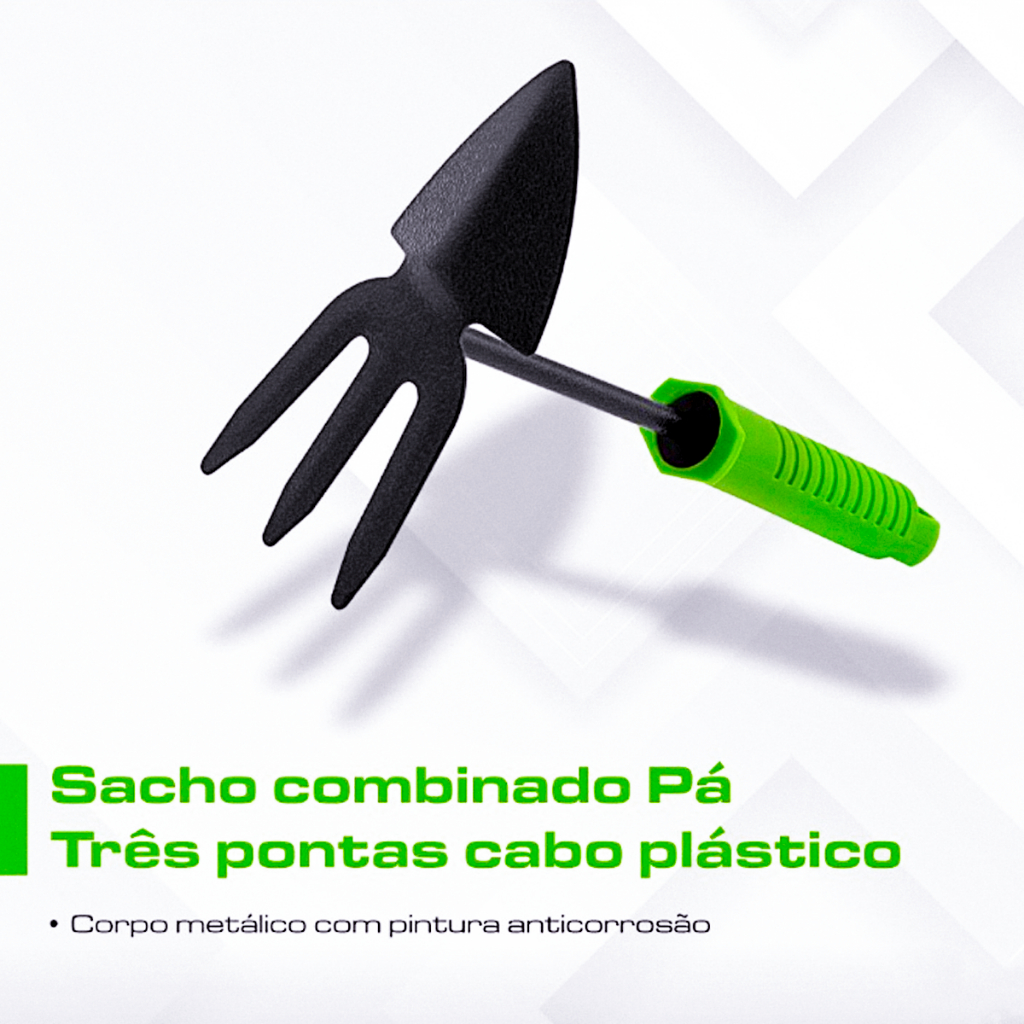 Mini Sacho Duplo Para Jardim Jardinagem 24cm Horta Pá Garfo Rastelo Ancinho 2 Em 1 Prático Útil