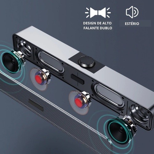 Mini Soundbar Caixa De Som Potente Smart Tv Pc Notebook P2 6W 38cm
