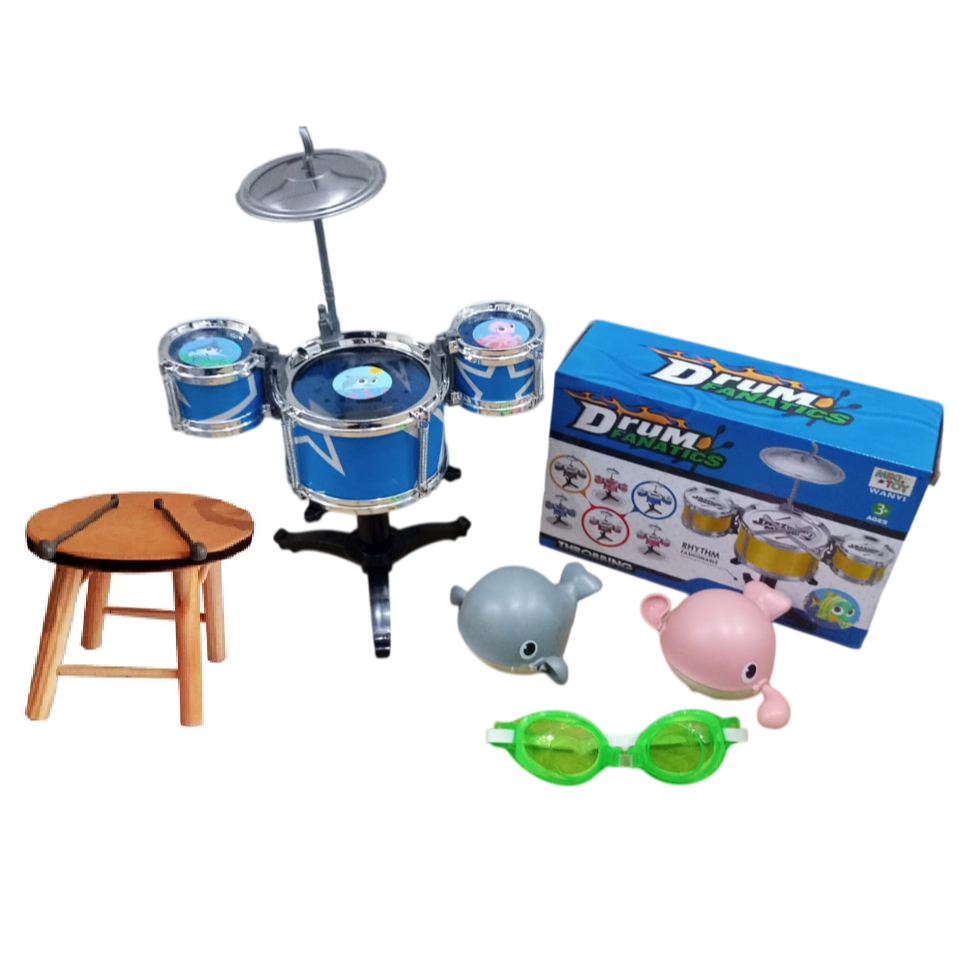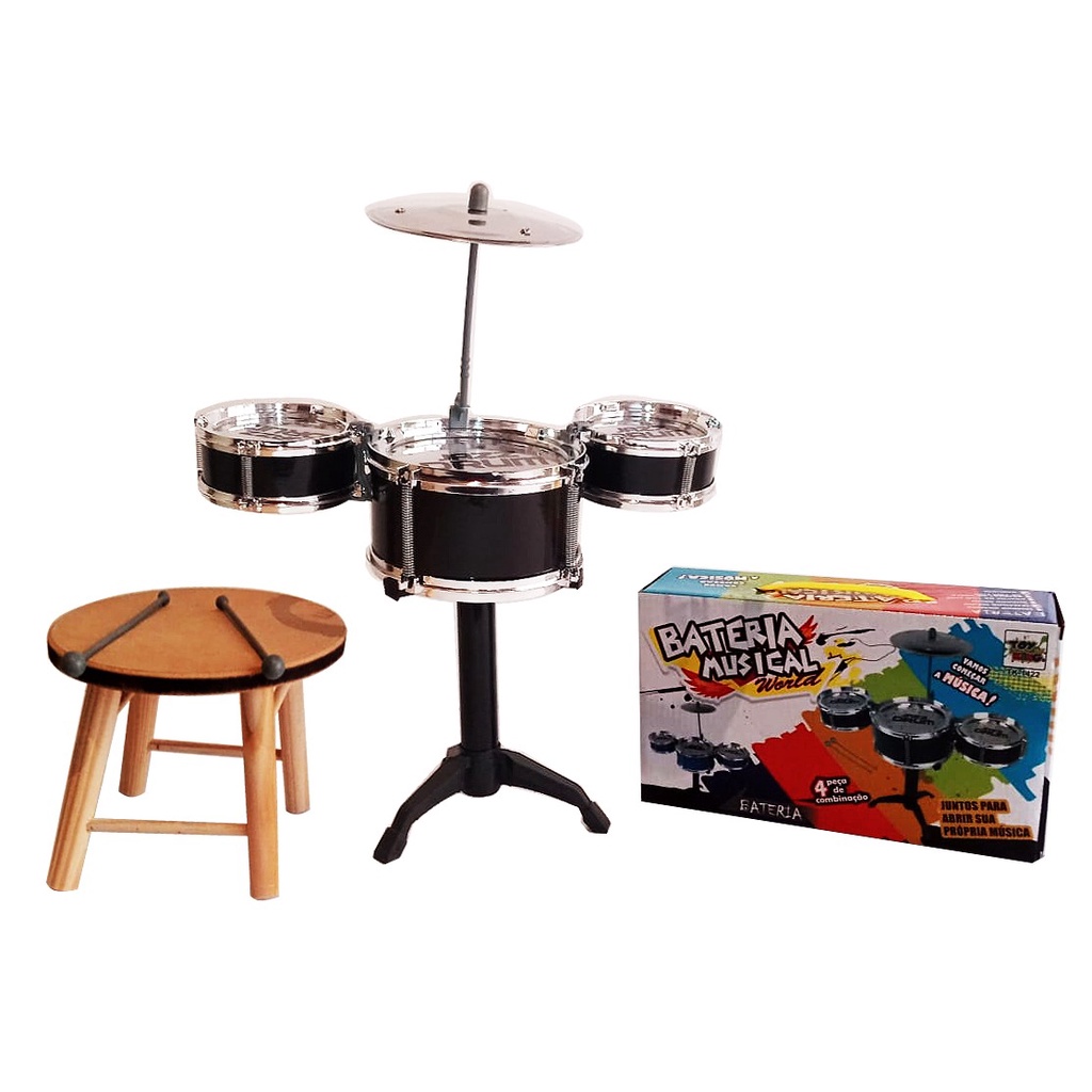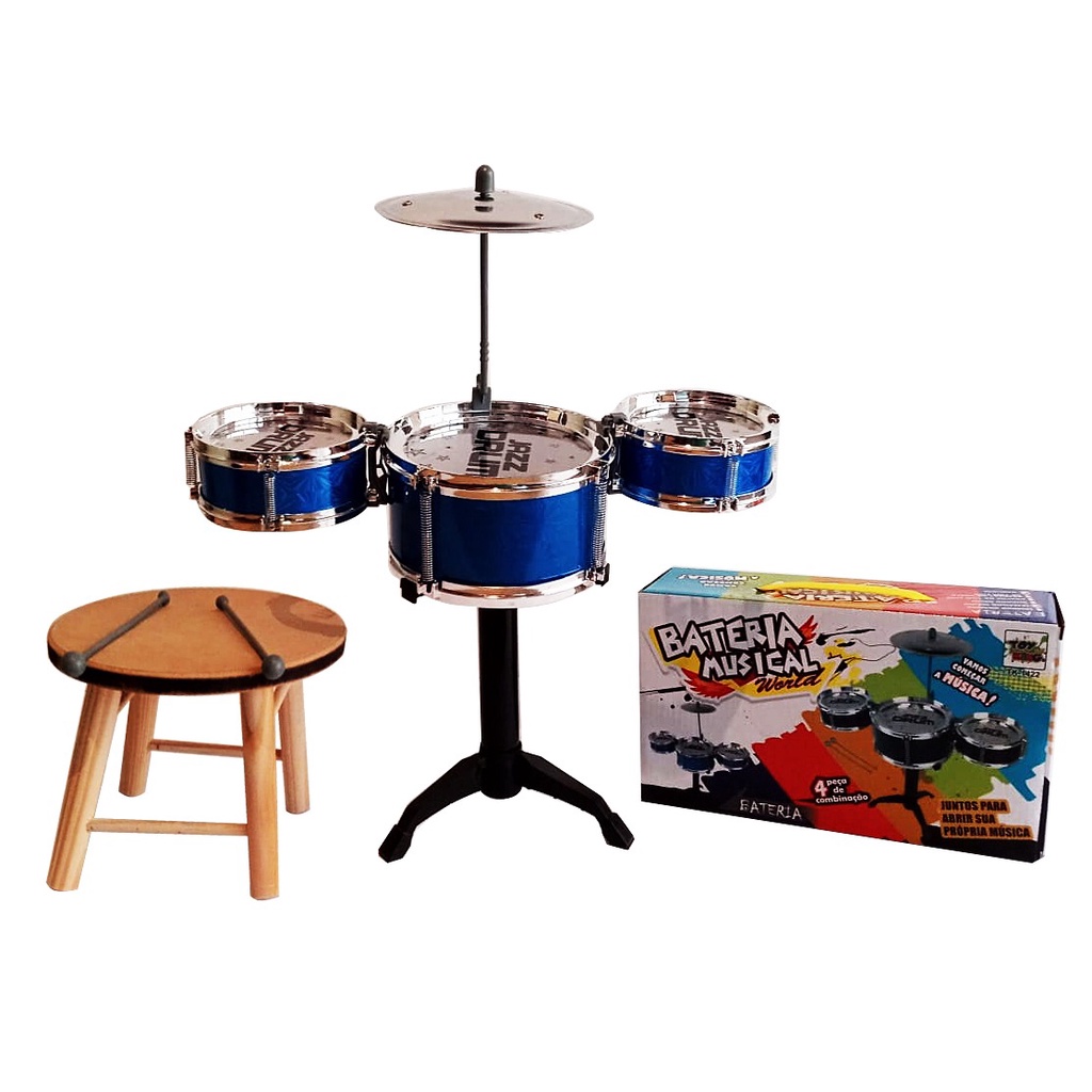 Mini bateria infantil Jazz Drum com duas baquetas tambores e banquinho