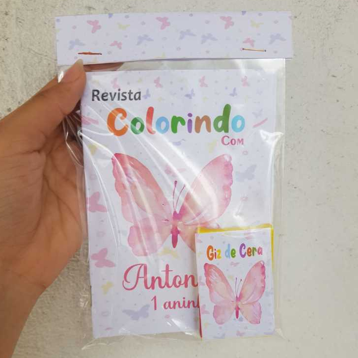 Mini livrinho de colorir + mini giz de cera no tema Borboleta 1