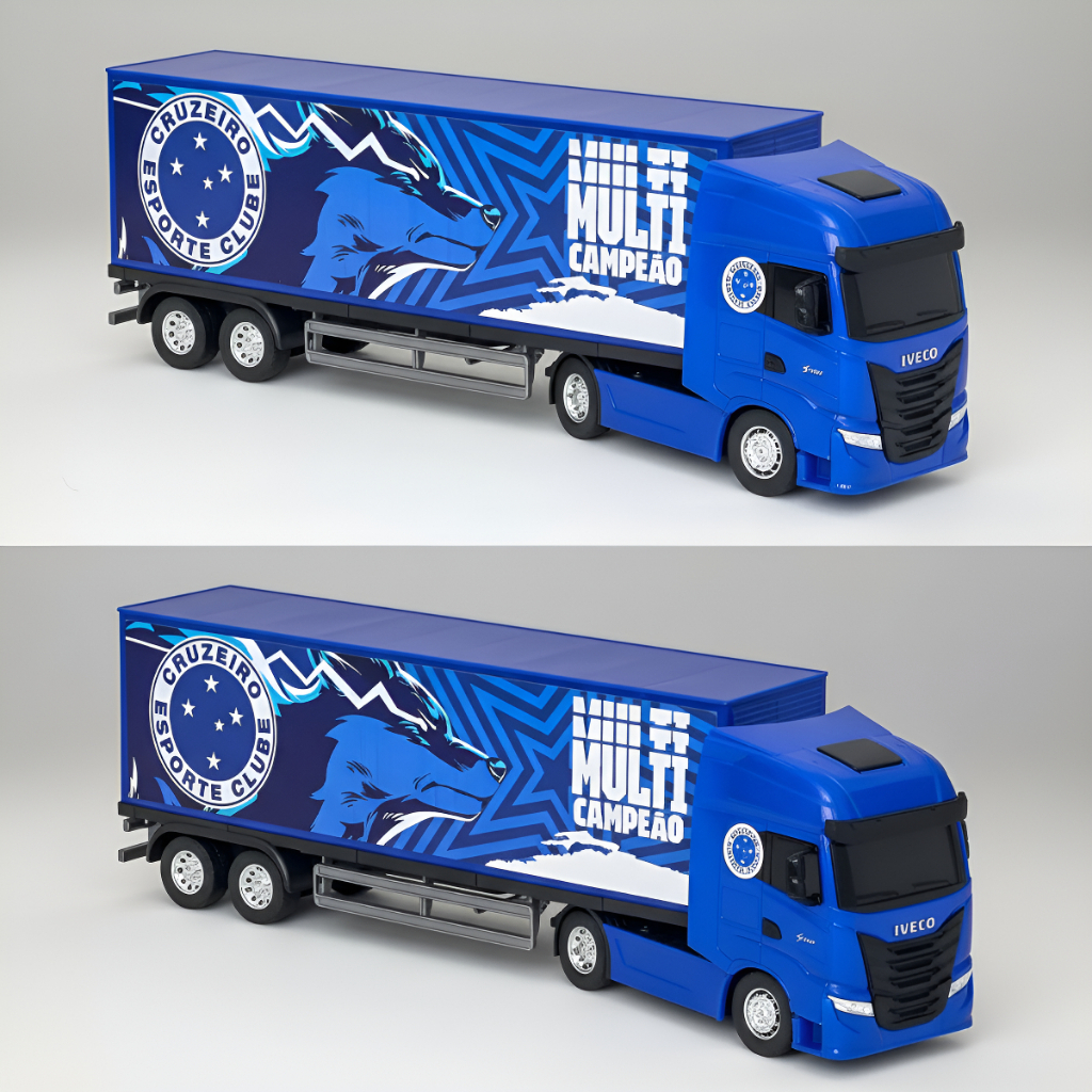 Miniatura Réplica Caminhão Brinquedo Iveco S-way Toco Baú Time Futebol Cruzeiro Oficial Raposa 1:30