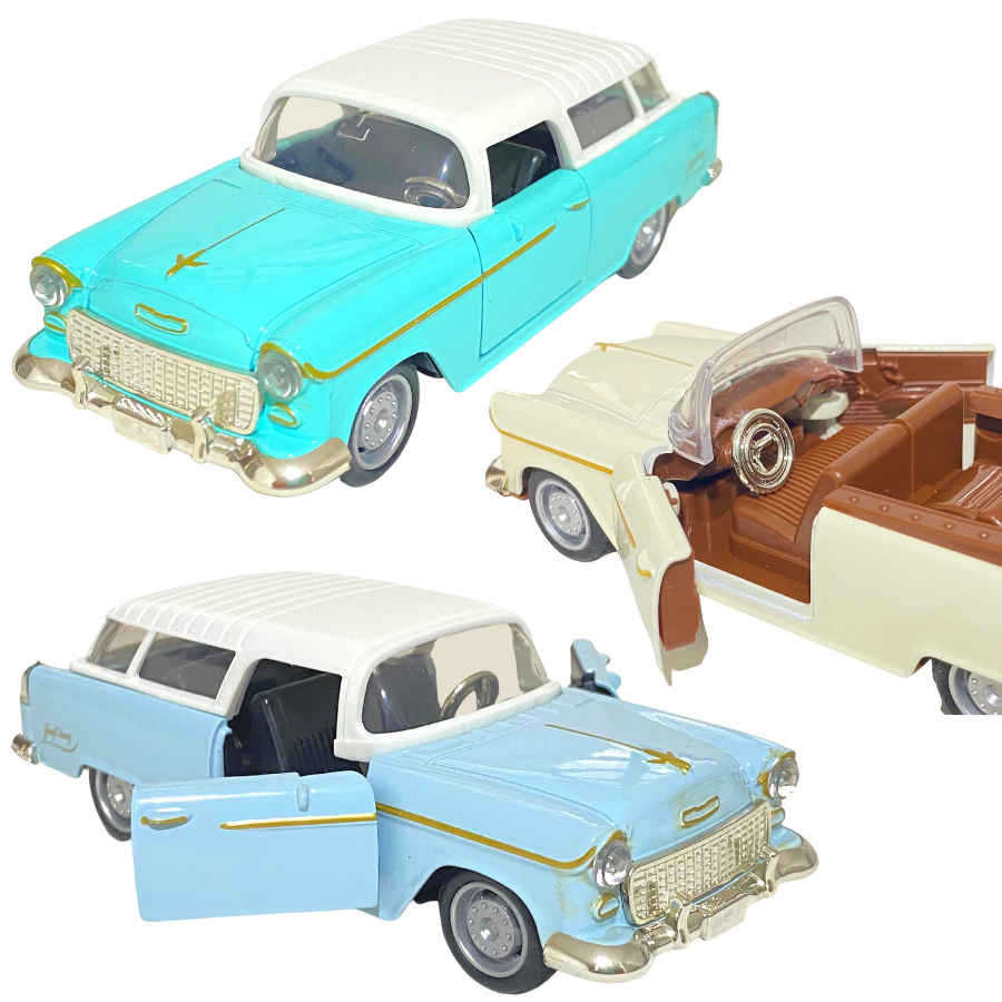 Miniatura carro coleção brinquedo Chevy Bel Air Nomad 1955 Ferro Metal Clássico fricção