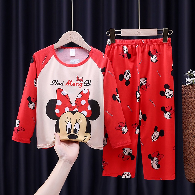 Minnie Meninas Define Mickey Meninos Pijamas Terno Outono Crianças Topos Calças 2 Pçs Primavera Bebê Roupa