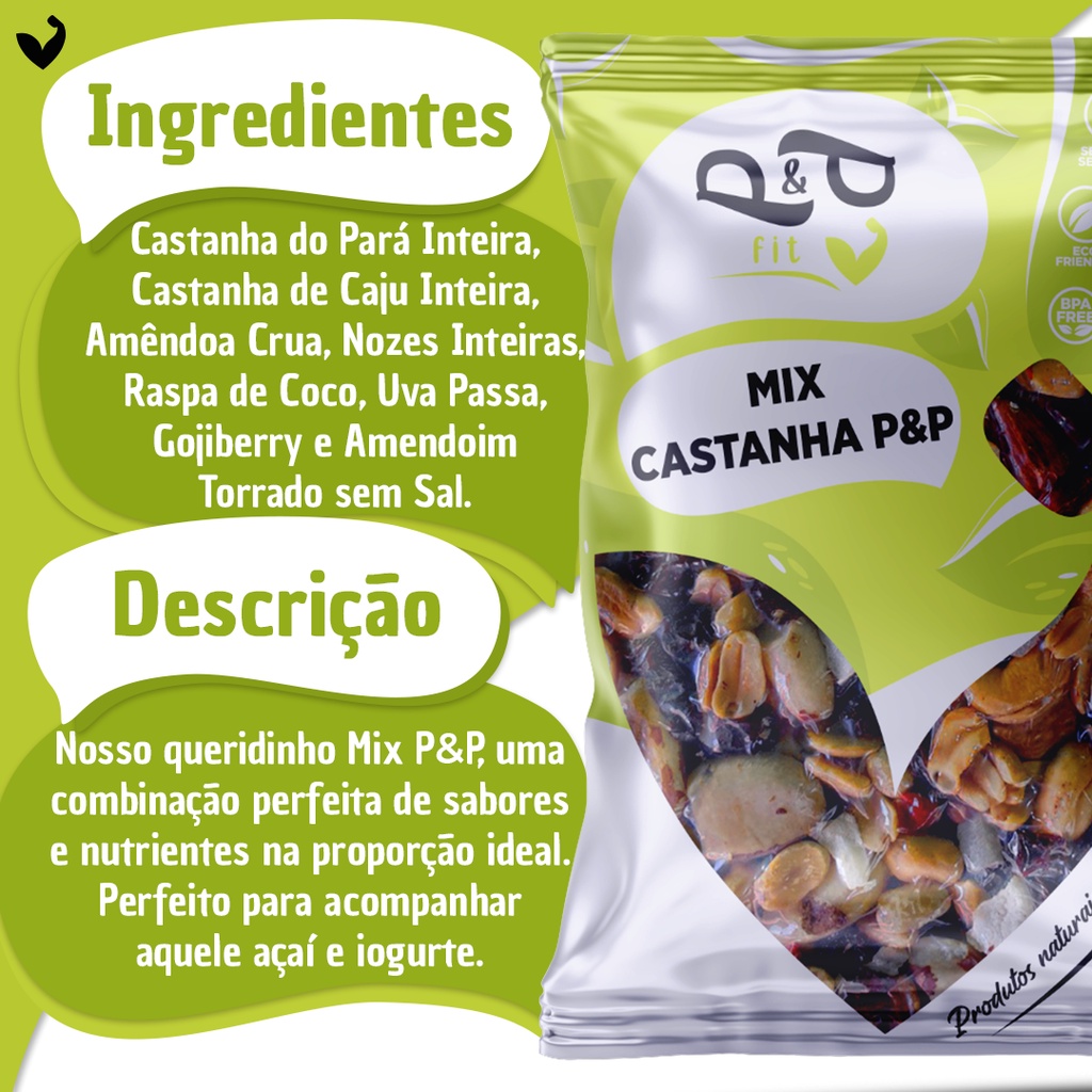 Mix P&P Nuts Castanha Nozes Amendoa Coco Chips Amendoim Uva Passa GojiBerry 1Kg