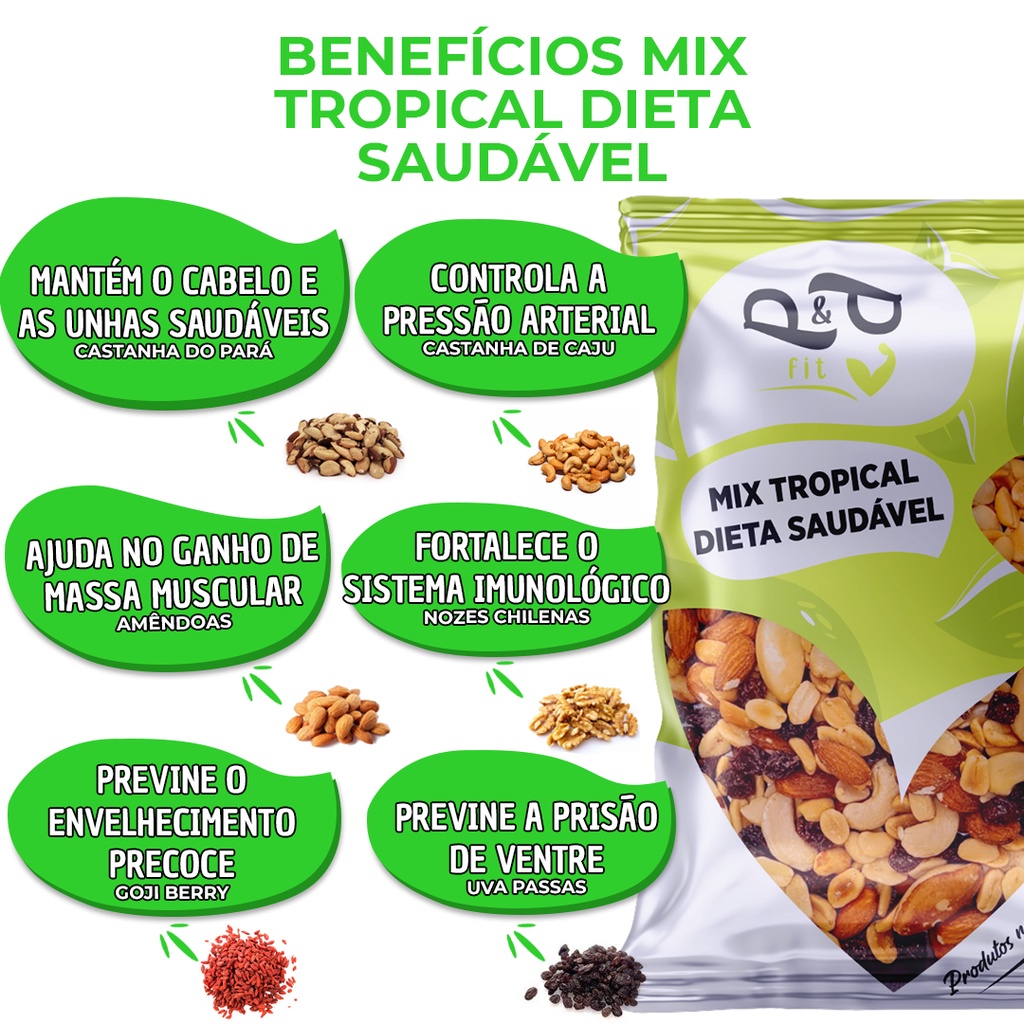 Mix Tropical Nuts 1Kg Castanha de Caju do Pará Amendoa Nozes Uva Passa Amendoim Gojiberry P&P