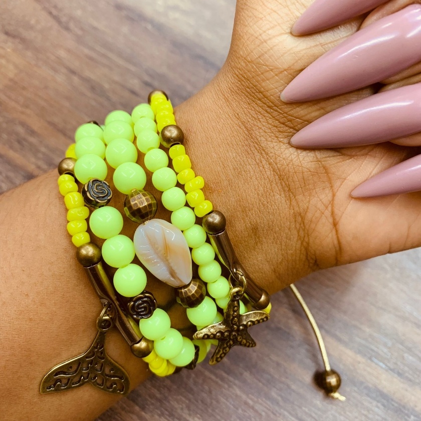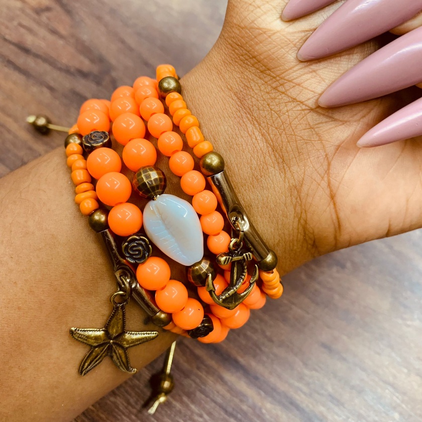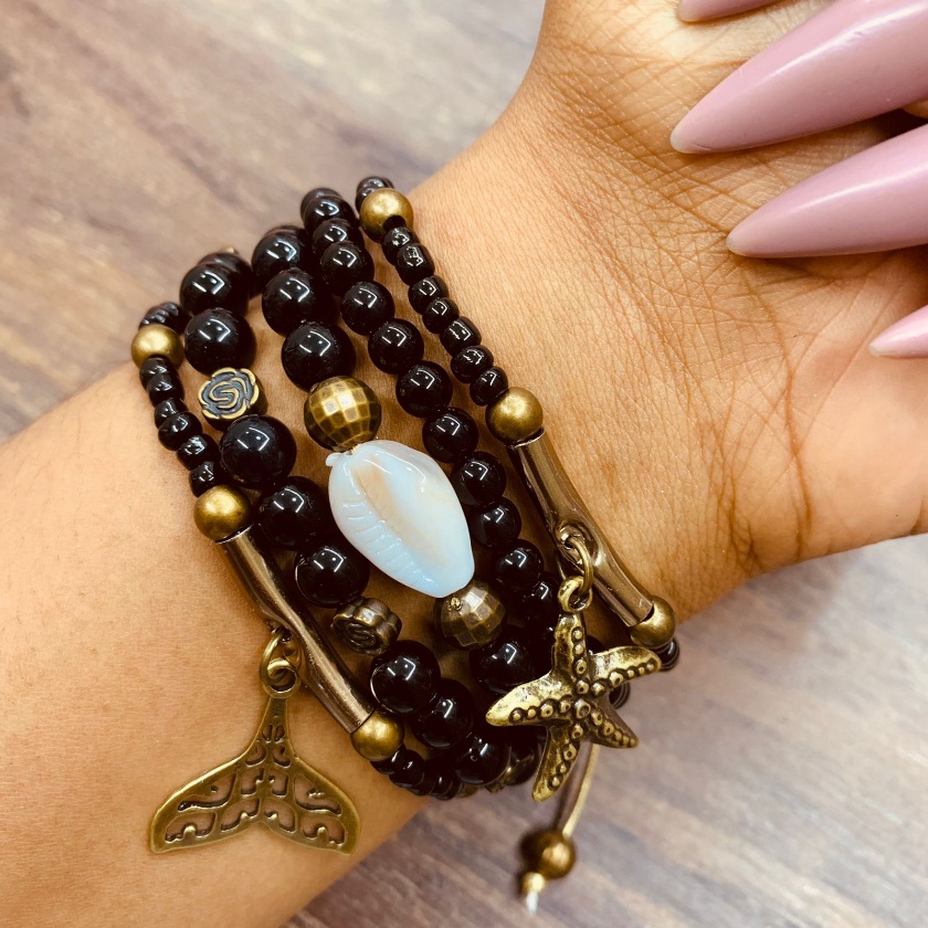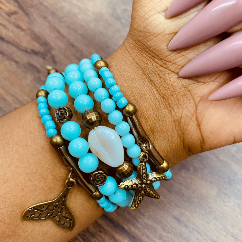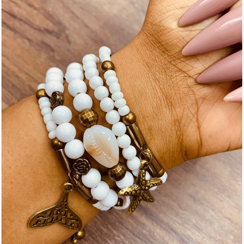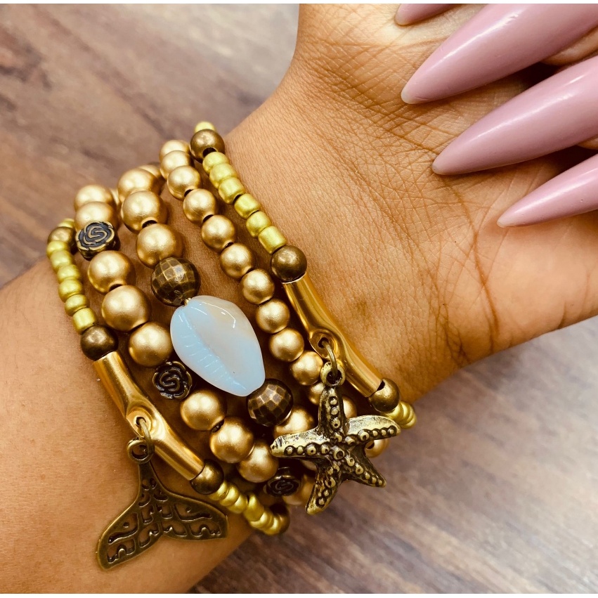 Mix com 6 pulseiras femininas atuais com pingentes elementos do mar