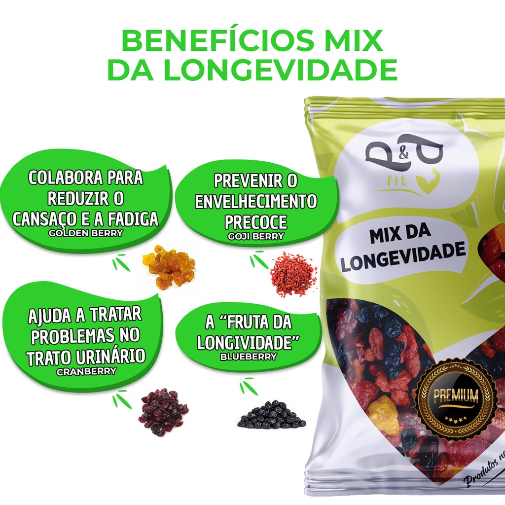 Mix da Longevidade BlueBerry Cranberry GojiBerry GoldenBerry Morango Glaceado Mirtilo 1Kg