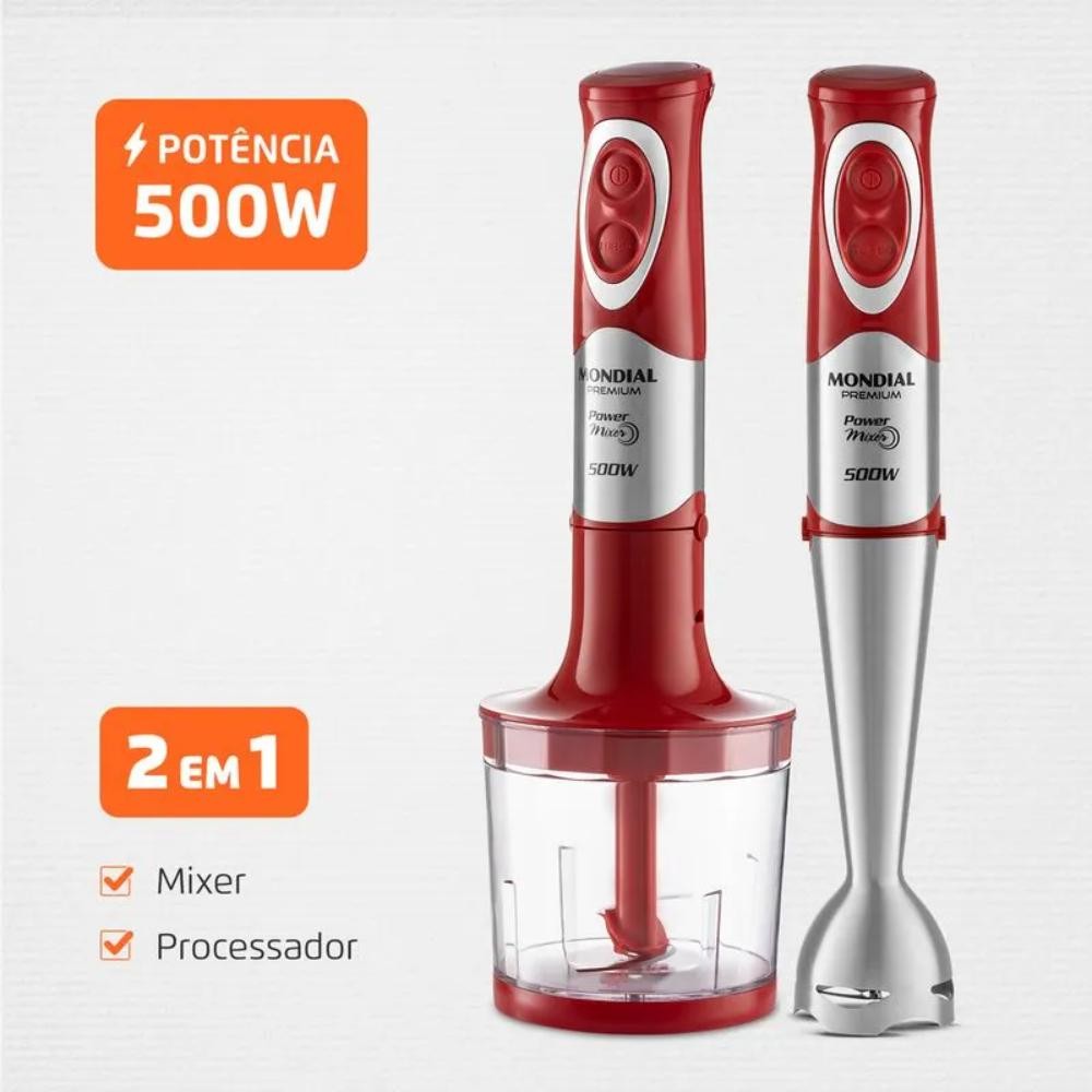 Mixer Mondial Power Red Premium 2 em 1 com Lâminas em Aço 500W Vermelho/Inox 220V - M-10