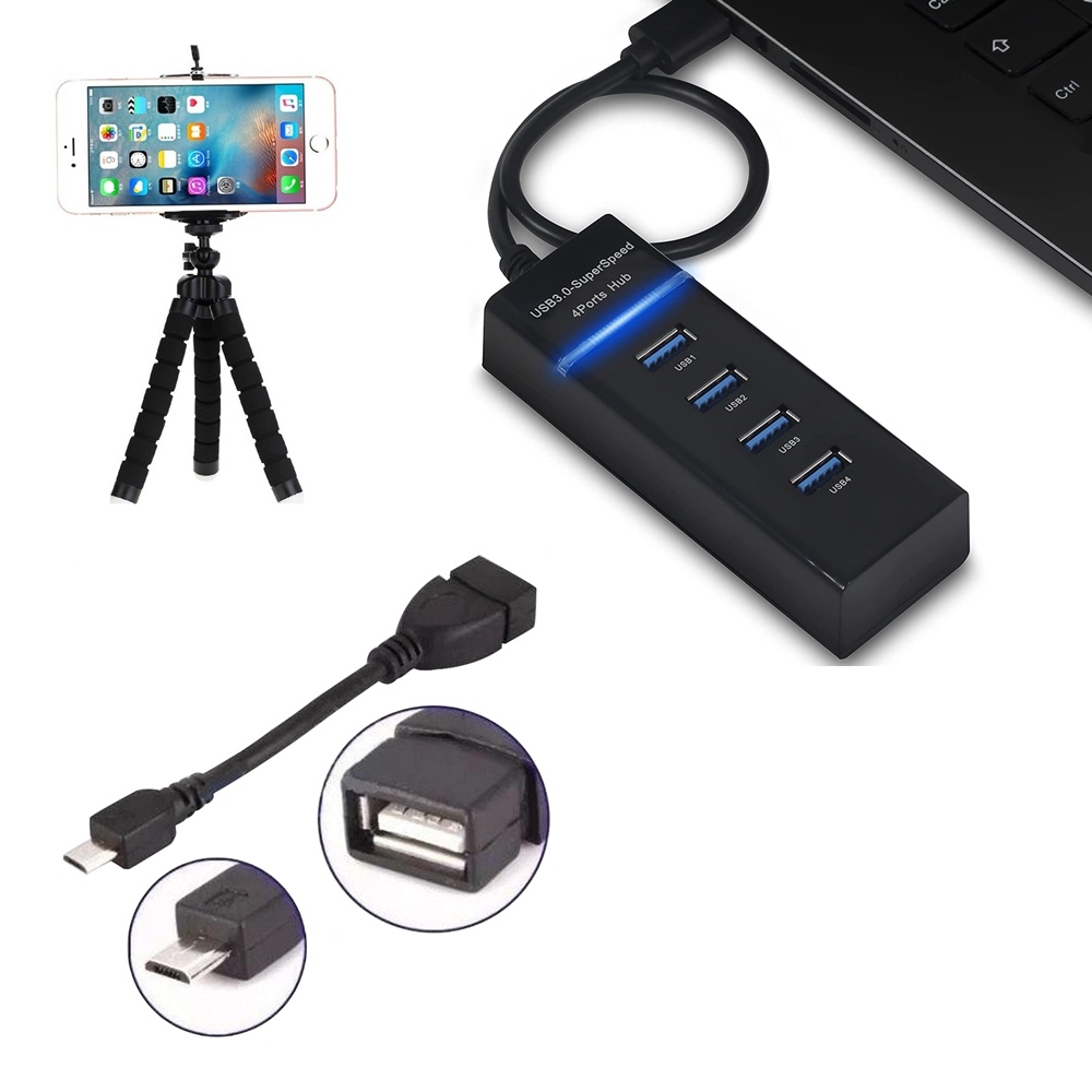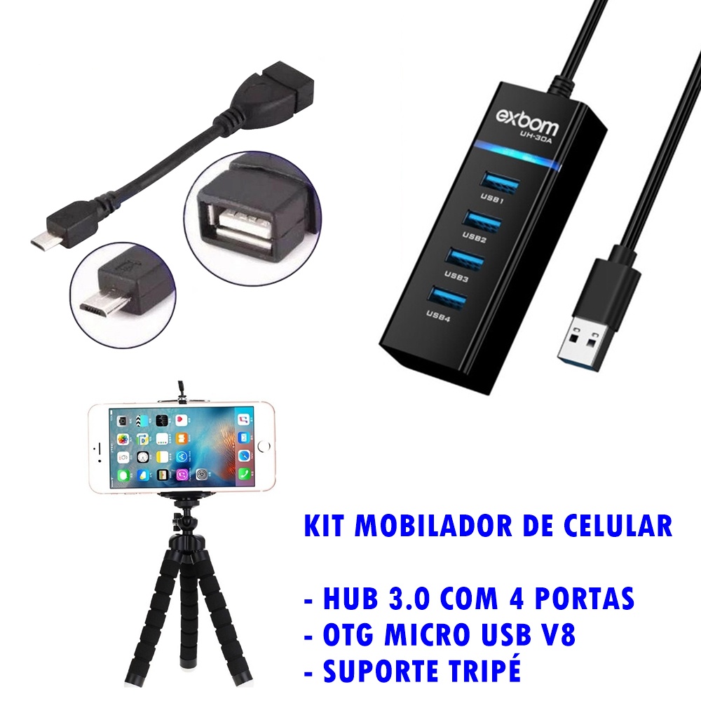 Mobilador Hub 3.0 Com 4 Portas Usb Otg Micro Usb V8 Suporte Celular Gamer Kit Adaptador Teclado e Mouse Para Celular