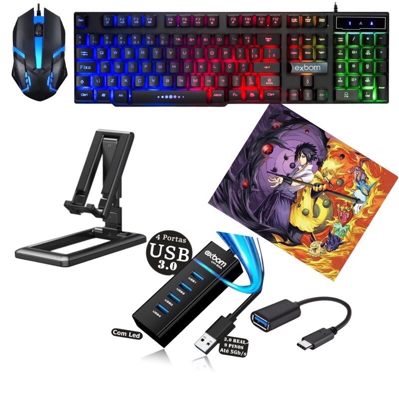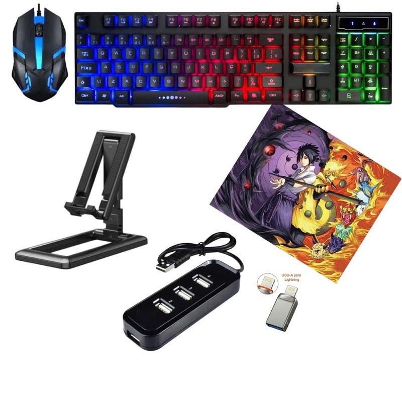 Mobilador Kit Gamer Teclado Mouse Otg Hub Usb Suporte para Celular 6 itens pc notebook celular
