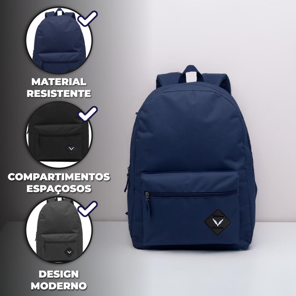 Mochila Basic Nylon Masculina Costas Menino Escola Curso Faculdade Resistente